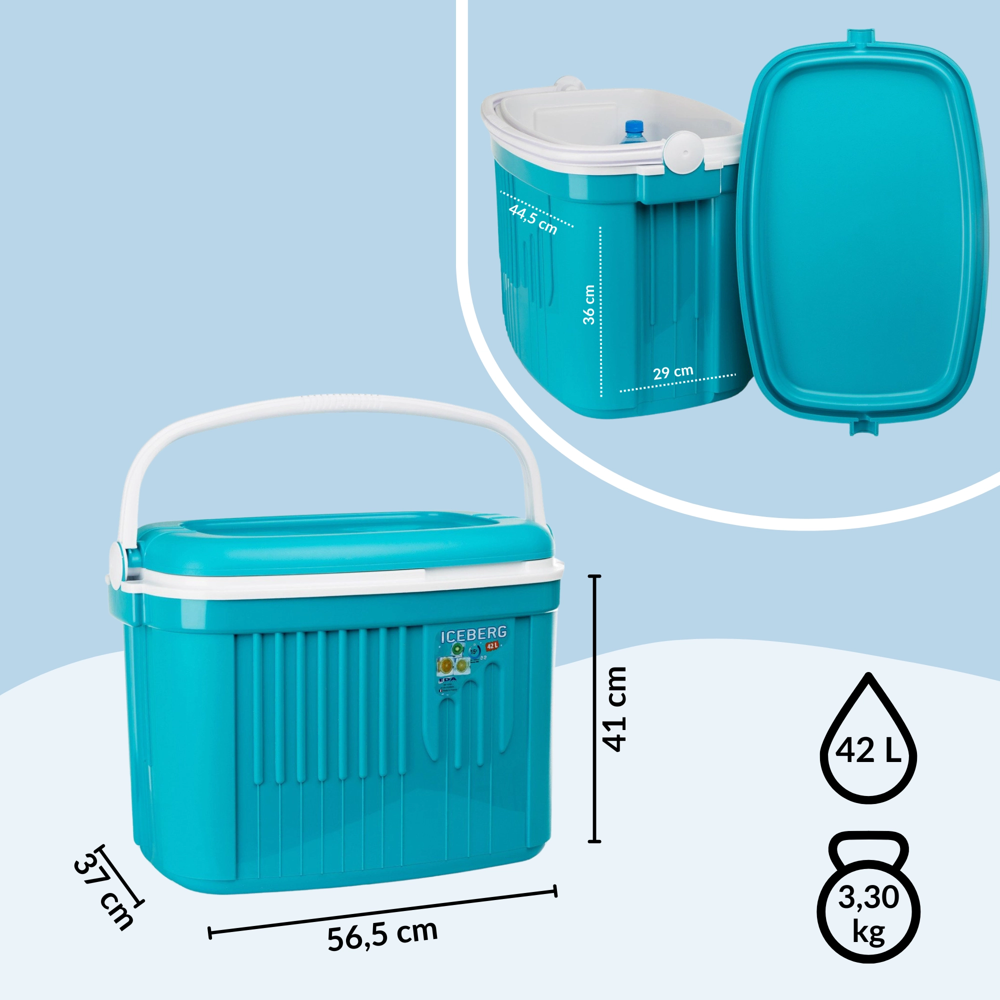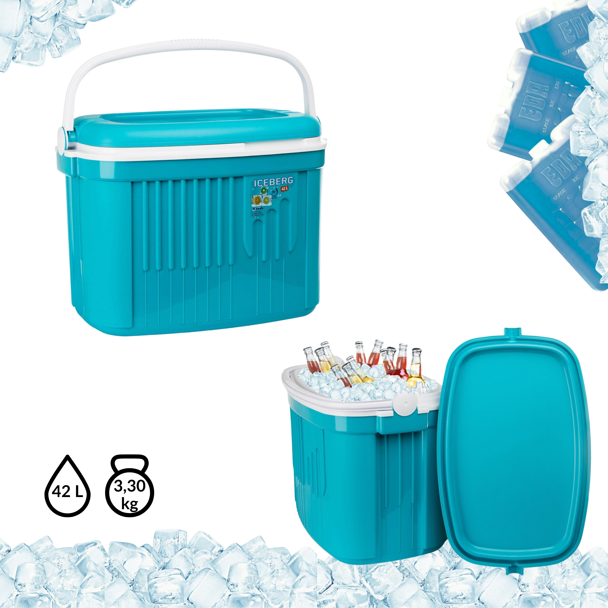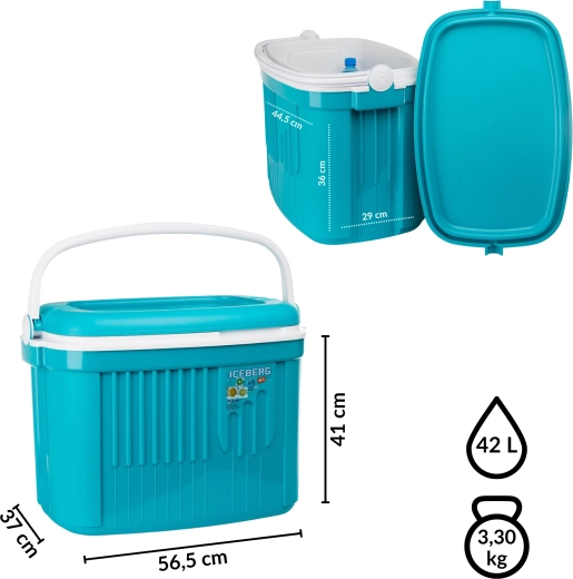 A KAMAI ICEBERG családi hűtőláda ideális piknikhez, vízpartra és nyaraláshoz. Kivételesen könnyű (3,4 kg), ugyanakkor kemény, nem deformálódó műanyagból készül, a fedélben és a testben található minőségi szigeteléssel, amely stabilan alacsony hőmérsékletet biztosít még forró napokon is. Könnyű hordozni és tisztítani, élelmiszerbiztonságos, és kényelmesen hűt egy nagyobb bevásárlást vagy az egész család frissítőit.
