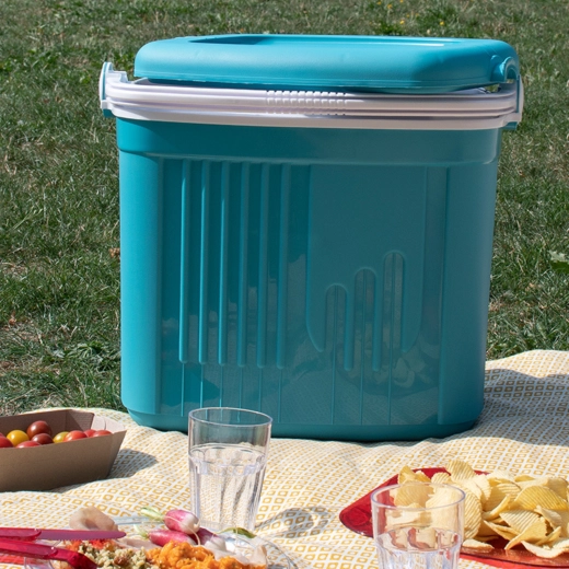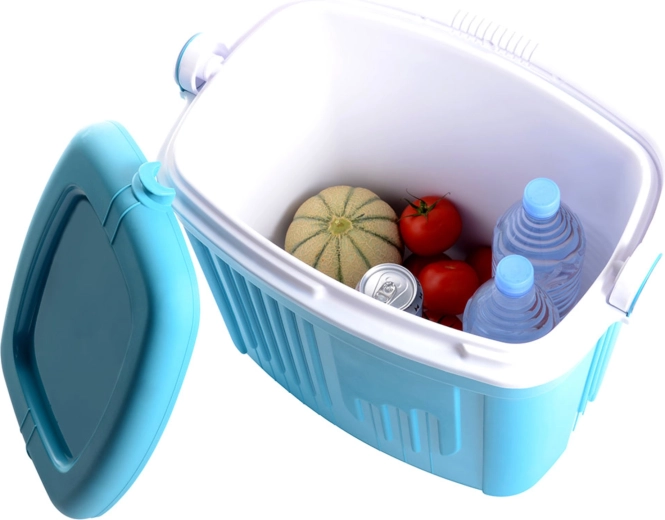 A láda minőségi polipropilénből készül, amely könnyen tisztítható és ellenáll a mindennapos használatnak. A maximális hűtési hatás érdekében elegendő előhűtött élelmiszereket behelyezni, és fagyasztott hűtőbetétekkel kiegészíteni az ételek fölé vagy közé.