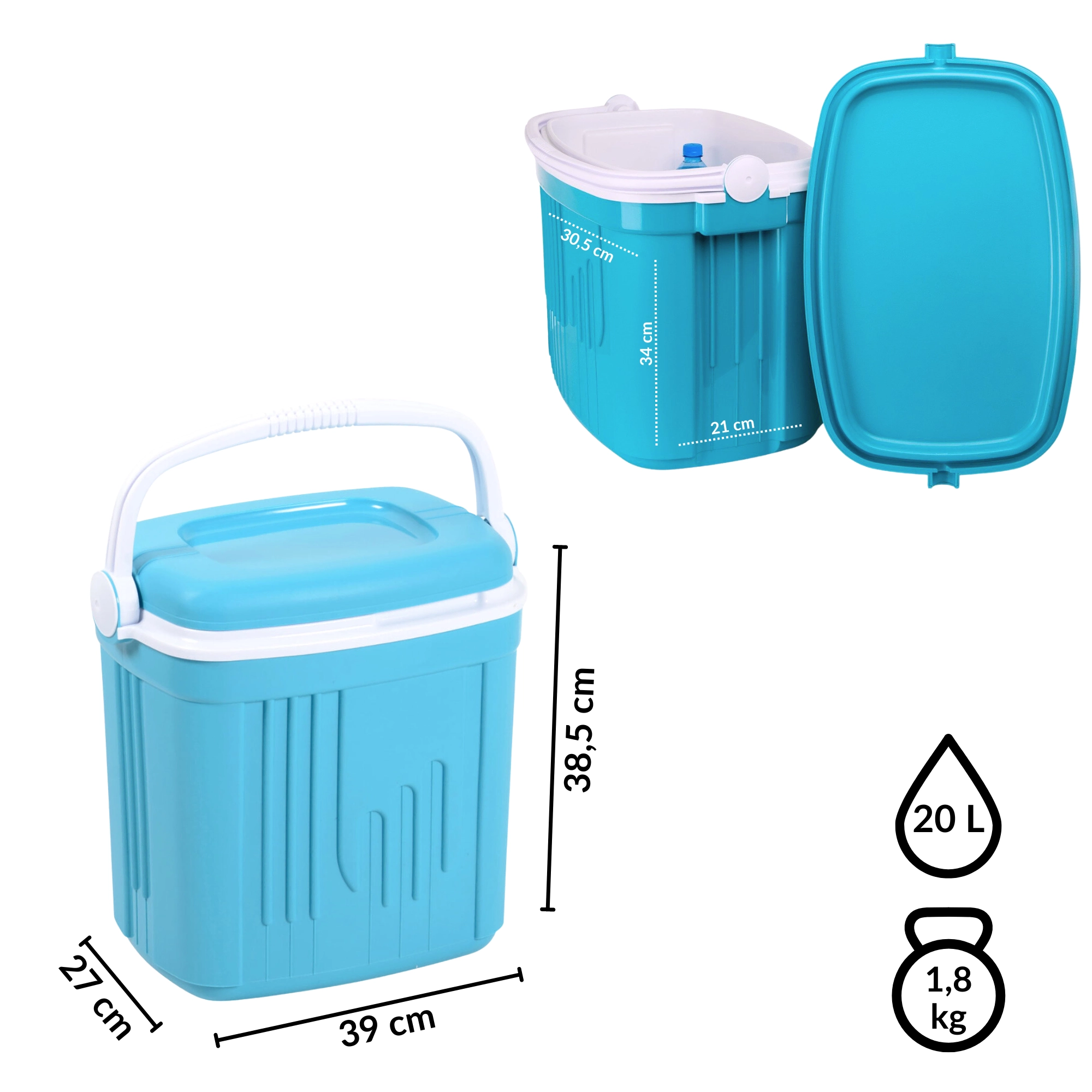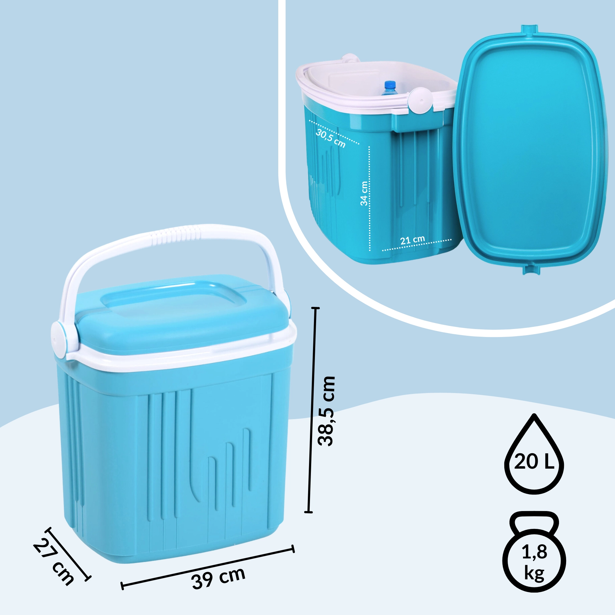Turisztikai hűtőtáska 20 l KAMAI ICEBERG, türkiz fehér fogantyúval