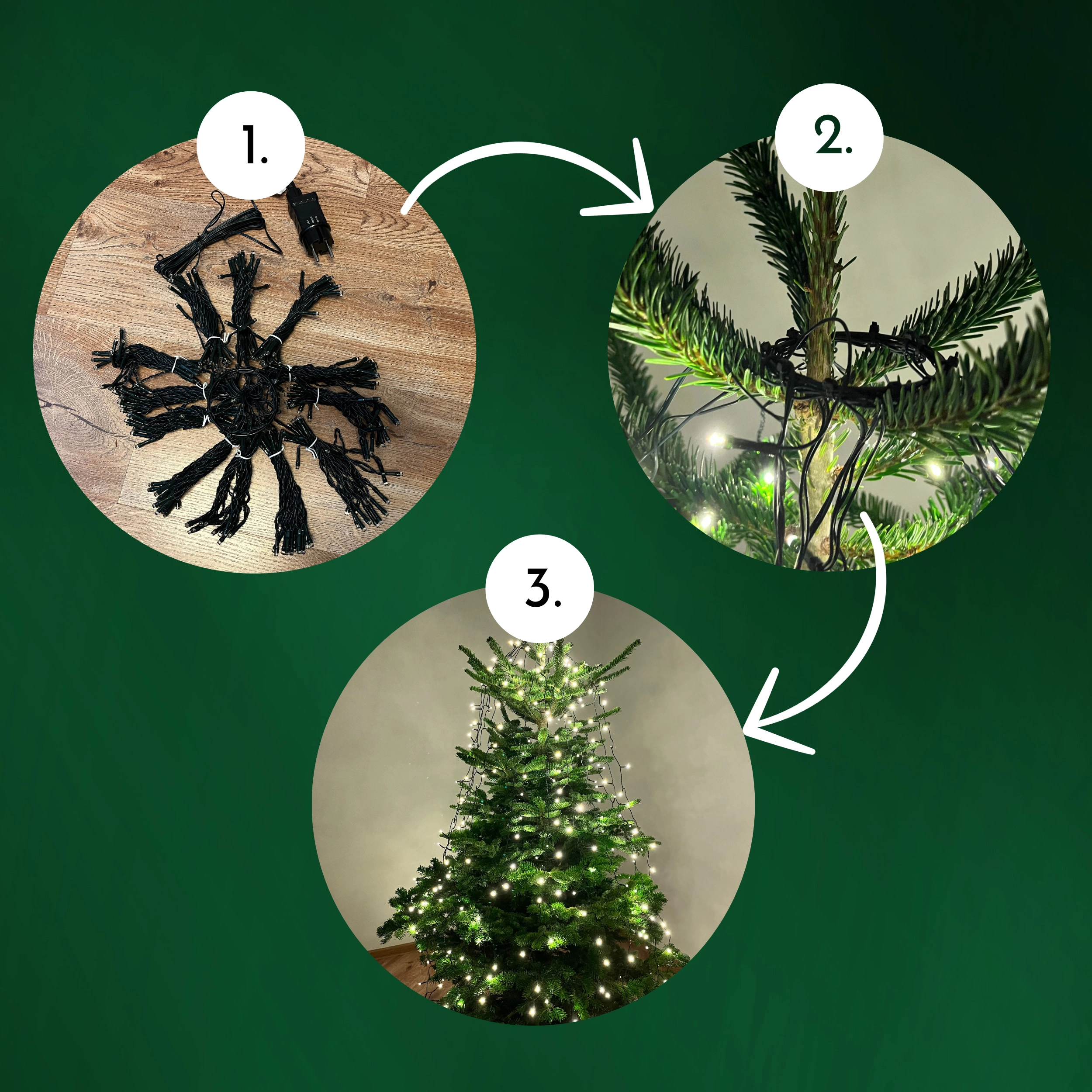 • Rugalmas elhelyezés: 5 m hosszú tápkábel, a sötétzöld vezeték észrevétlenül beleolvad a tűlevelek közé.