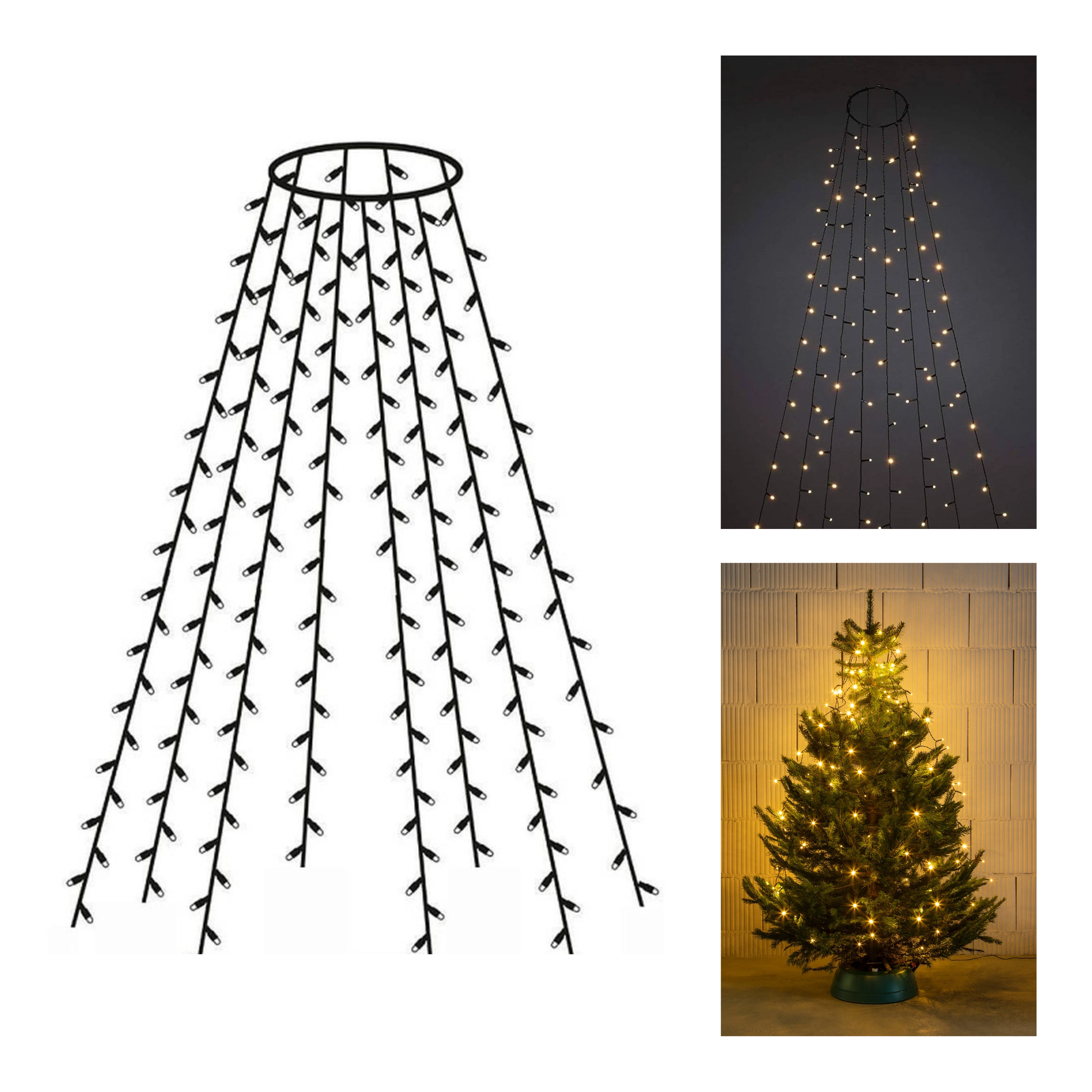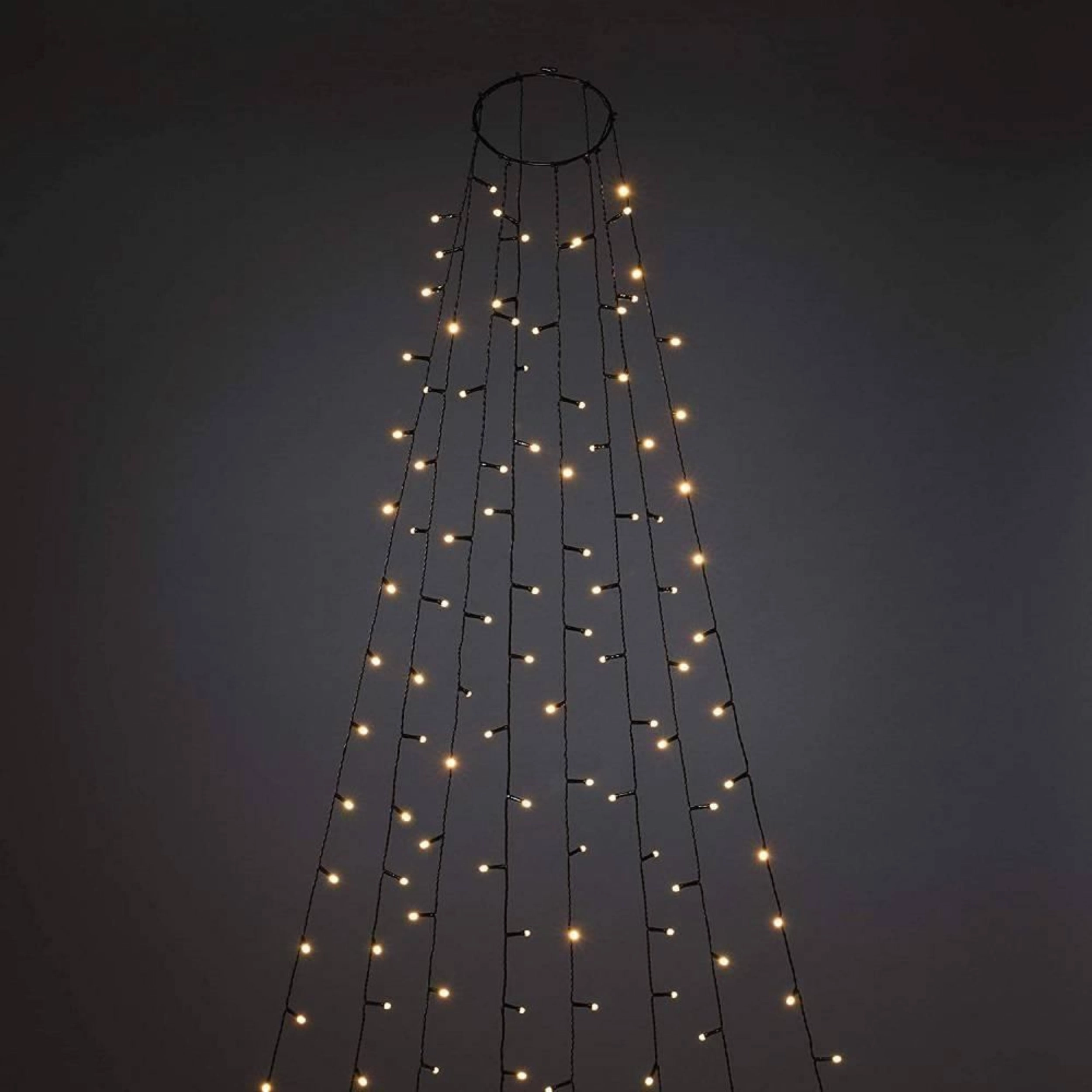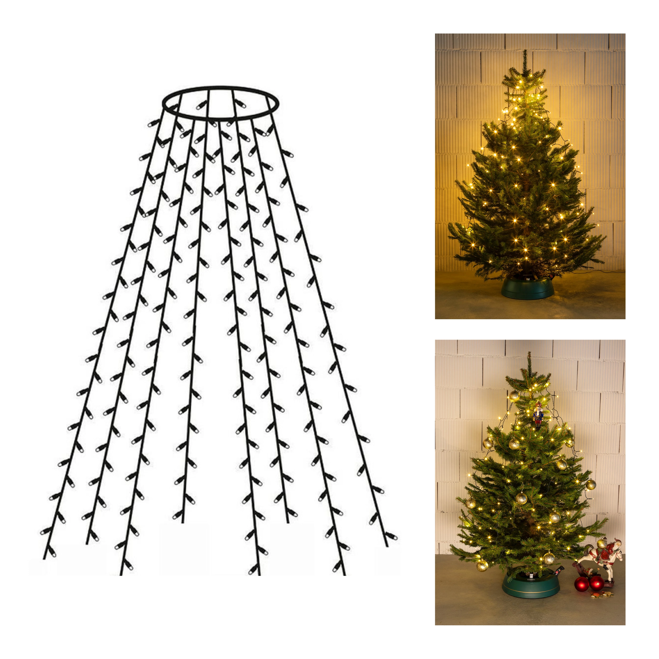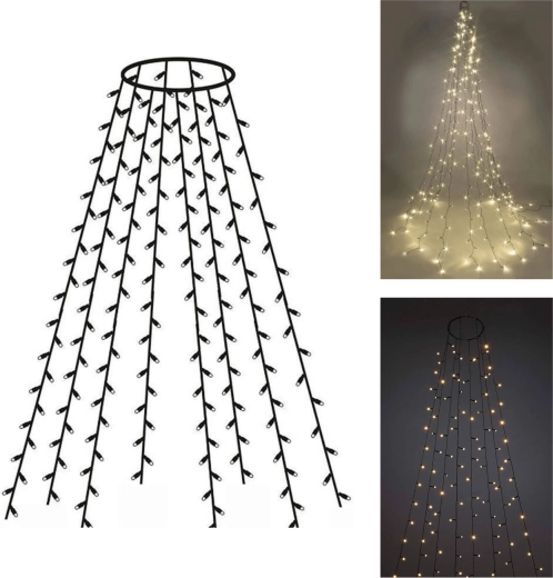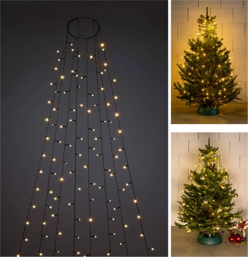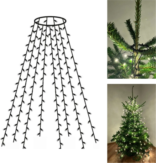 Pillanatok alatt felragyogtatja a fát. A praktikus gyűrűt helyezze a csúcsra, majd egyszerűen ossza el a 8 fényköteget, mindegyik kb. 2 m hosszú. A meleg fehér fény otthonos, ünnepi hangulatot teremt, míg a LED technológia alacsony energiafogyasztást és hosszú élettartamot biztosít.
