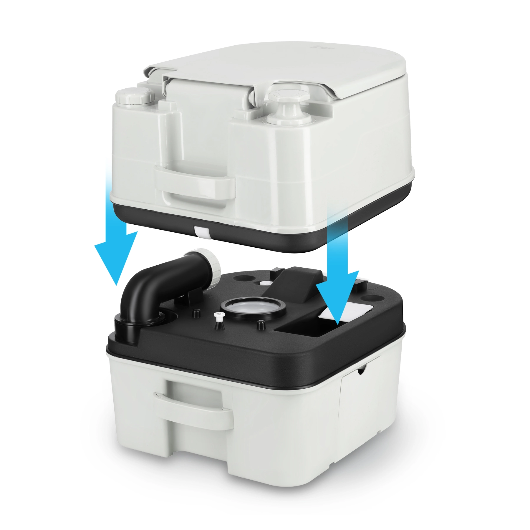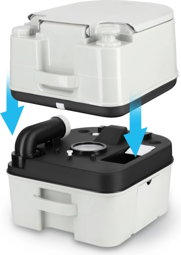 A polipropilénből készült, tartós ház és a tömített tolózáras szelep hatékonyan megakadályozza a szagok kiszökését. A kézi pumpa megbízható öblítést biztosít áram és vízcsatlakozás nélkül is. Az ergonomikus magasságnak és a széles ülőkének köszönhetően minden felhasználó számára kényelmes.