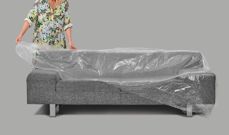 A tartós polietilén huzat kiváló választás a kárpit védelmére festés, felújítás, költözés és hosszú távú tárolás során. Az átlátszó anyag vízálló, szakadásálló, és láthatóan hagyja a kanapé megjelenését. Költséghatékony alternatívaként is használható ponyvák helyett kerti bútorokhoz.