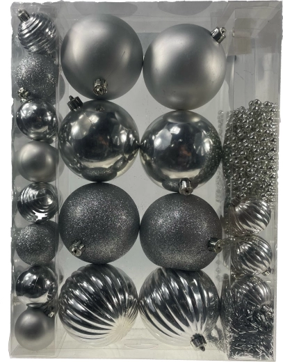 Az ezüst díszkészlettel elegáns, ragyogó megjelenést ér el, amely kiemeli a karácsony varázsát, és kellemes ünnepi hangulatot teremt bármely enteriőrben.