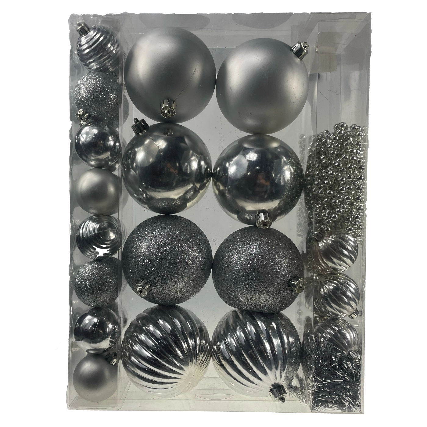 - 32 darab összehangolt ezüst palettában a fa teljes feldíszítéséhez.