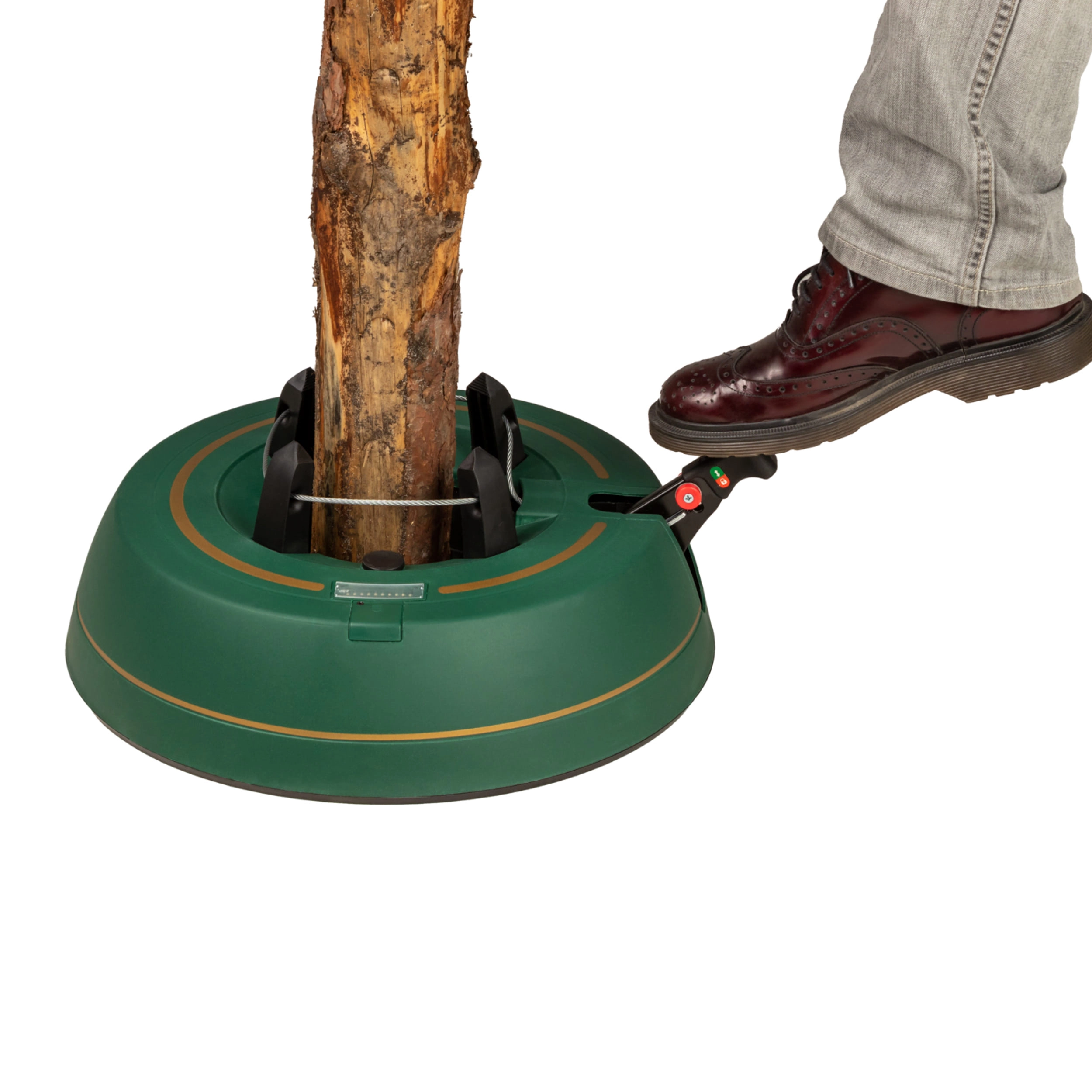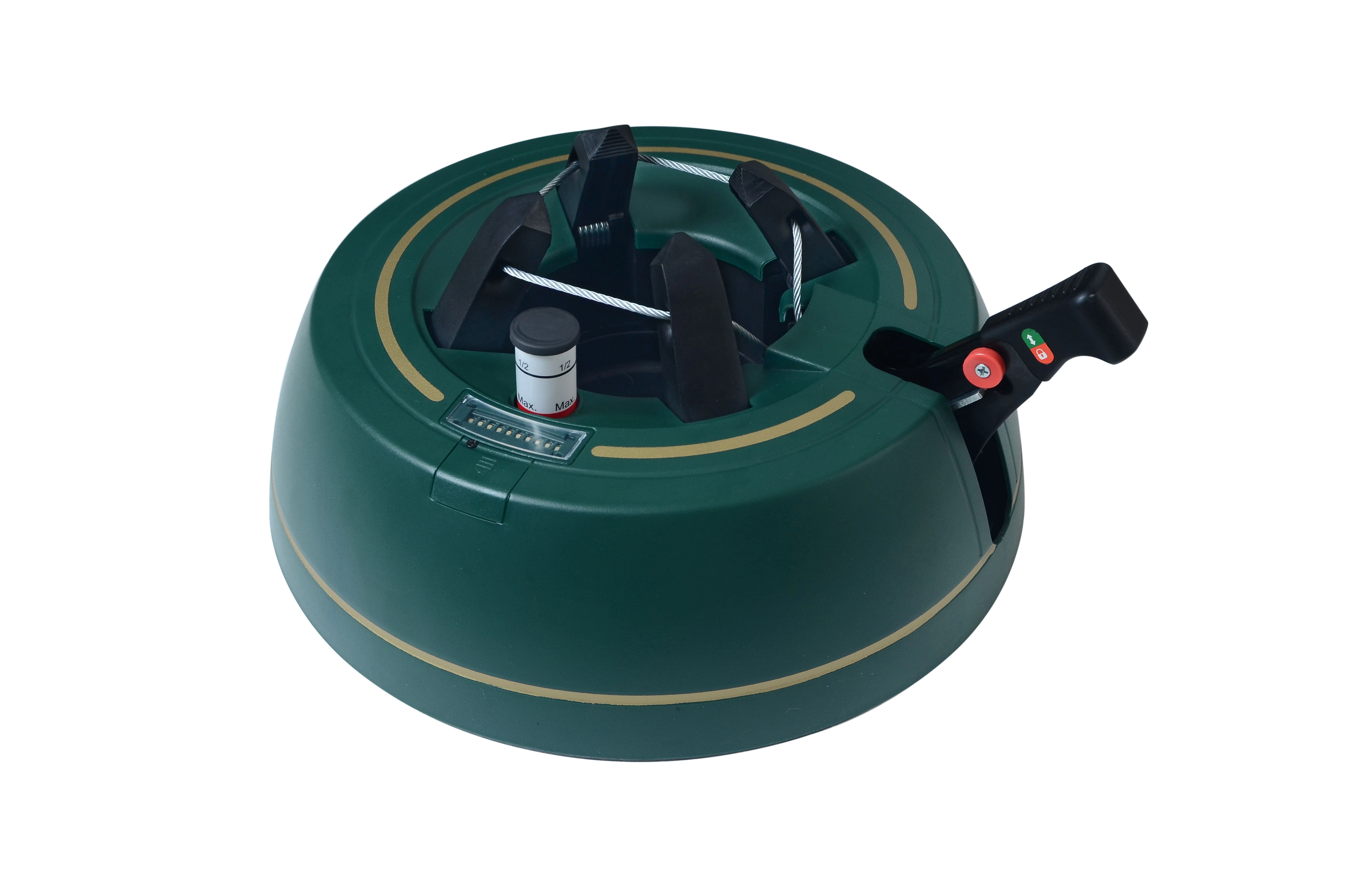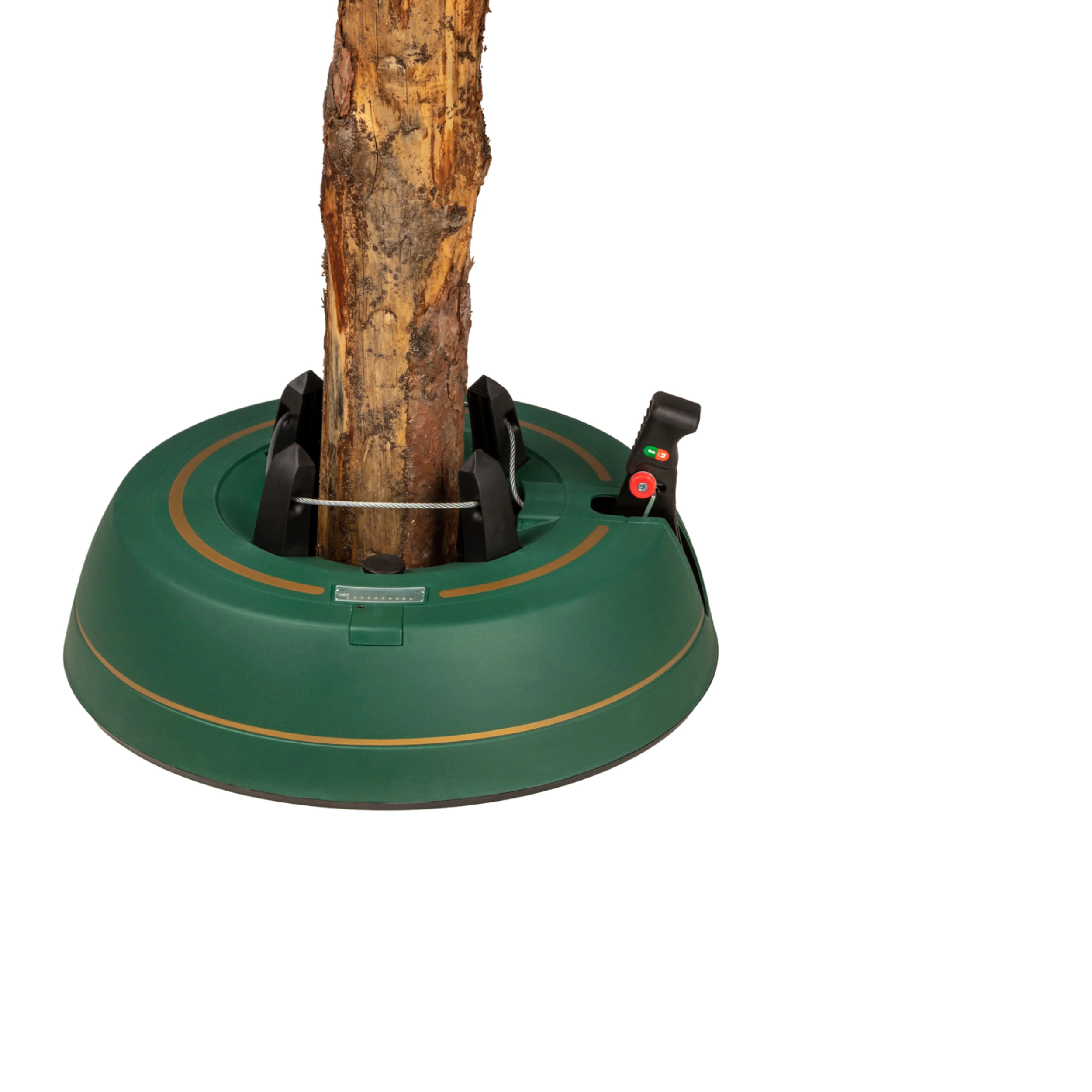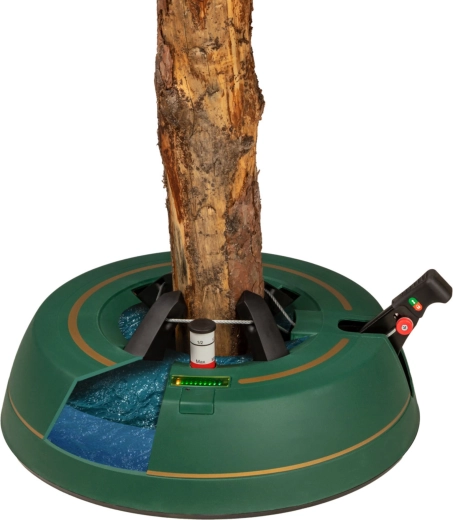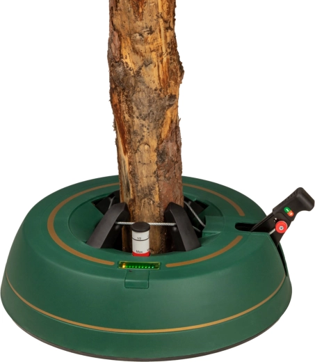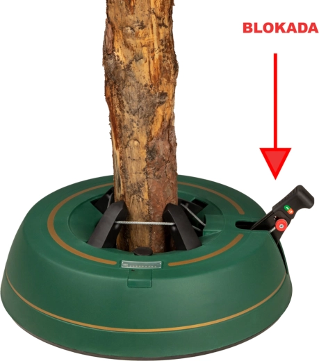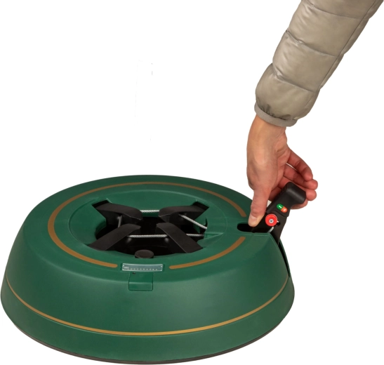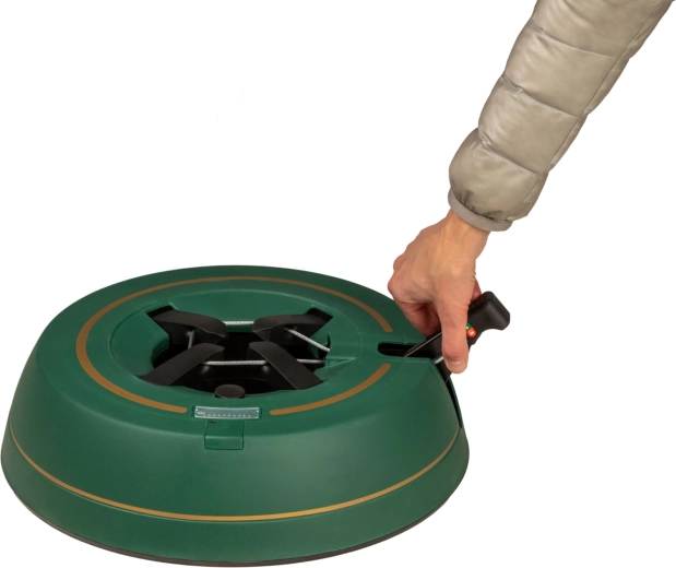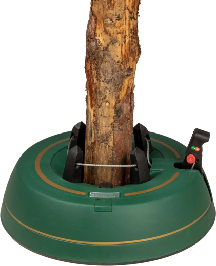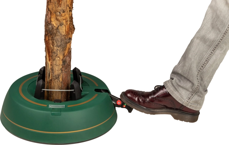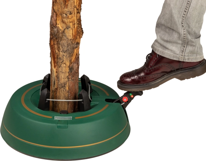 Széles, alacsony talapzat és erős befogó mechanizmus tartja a fát egyenesen még díszítés közben is. 3–11 cm törzsátmérőhöz alkalmas.