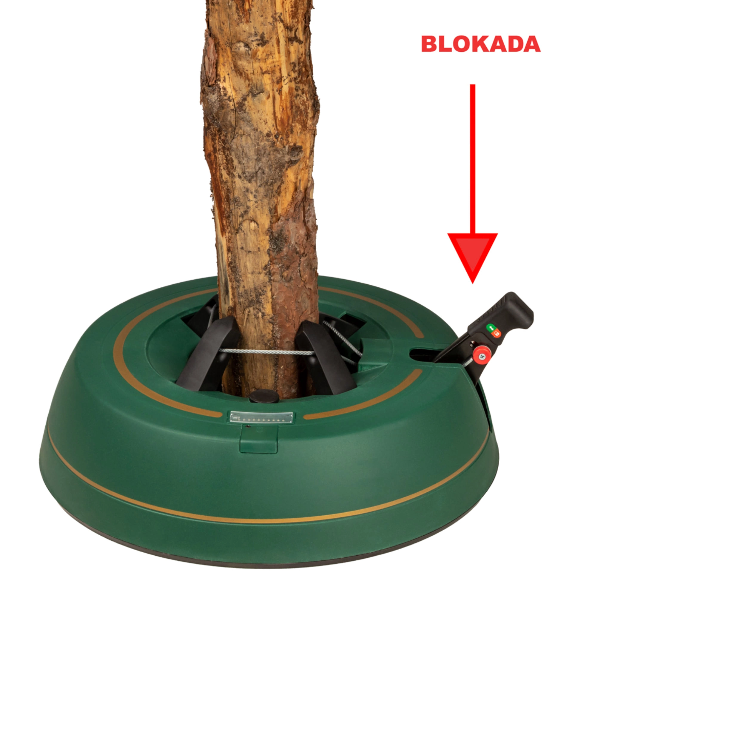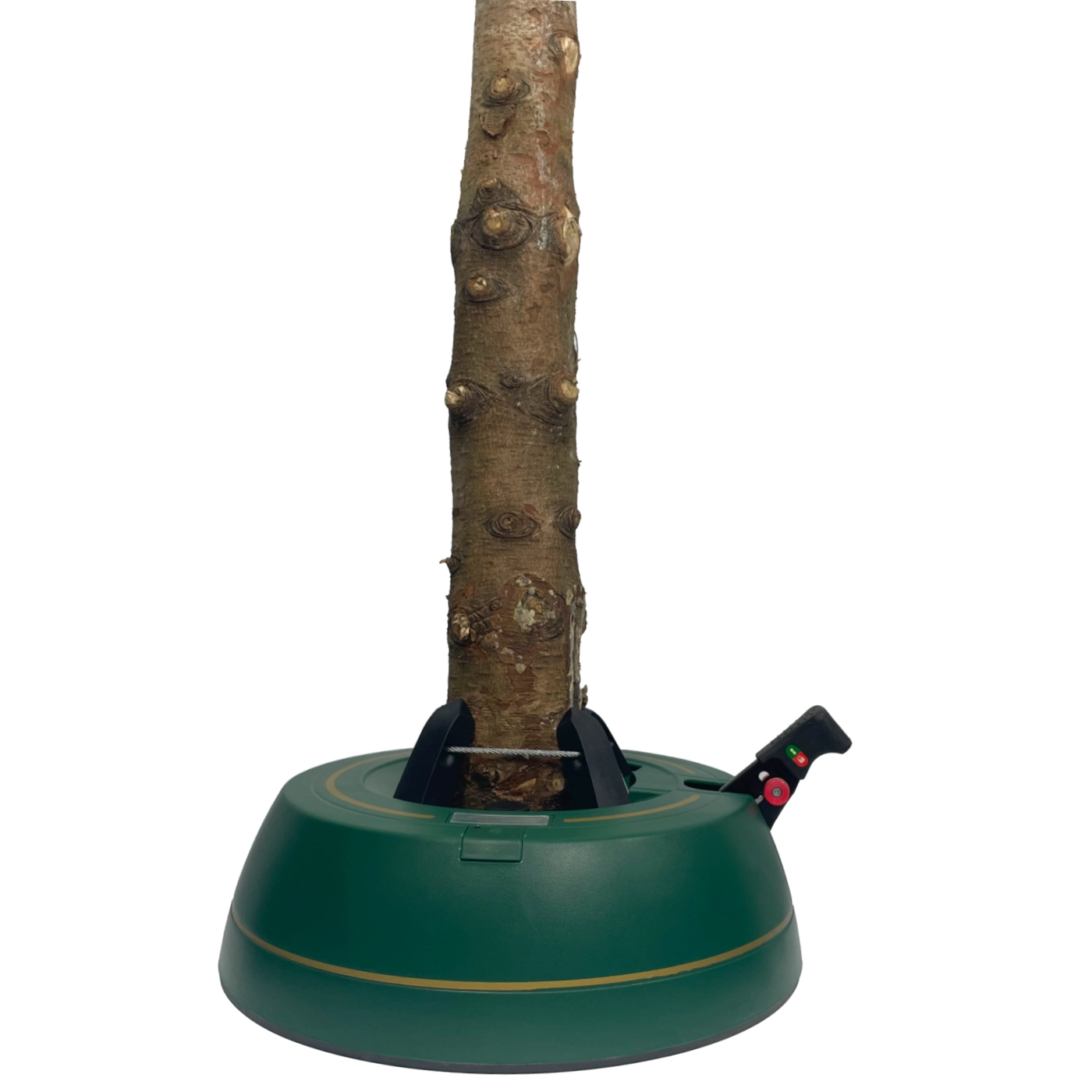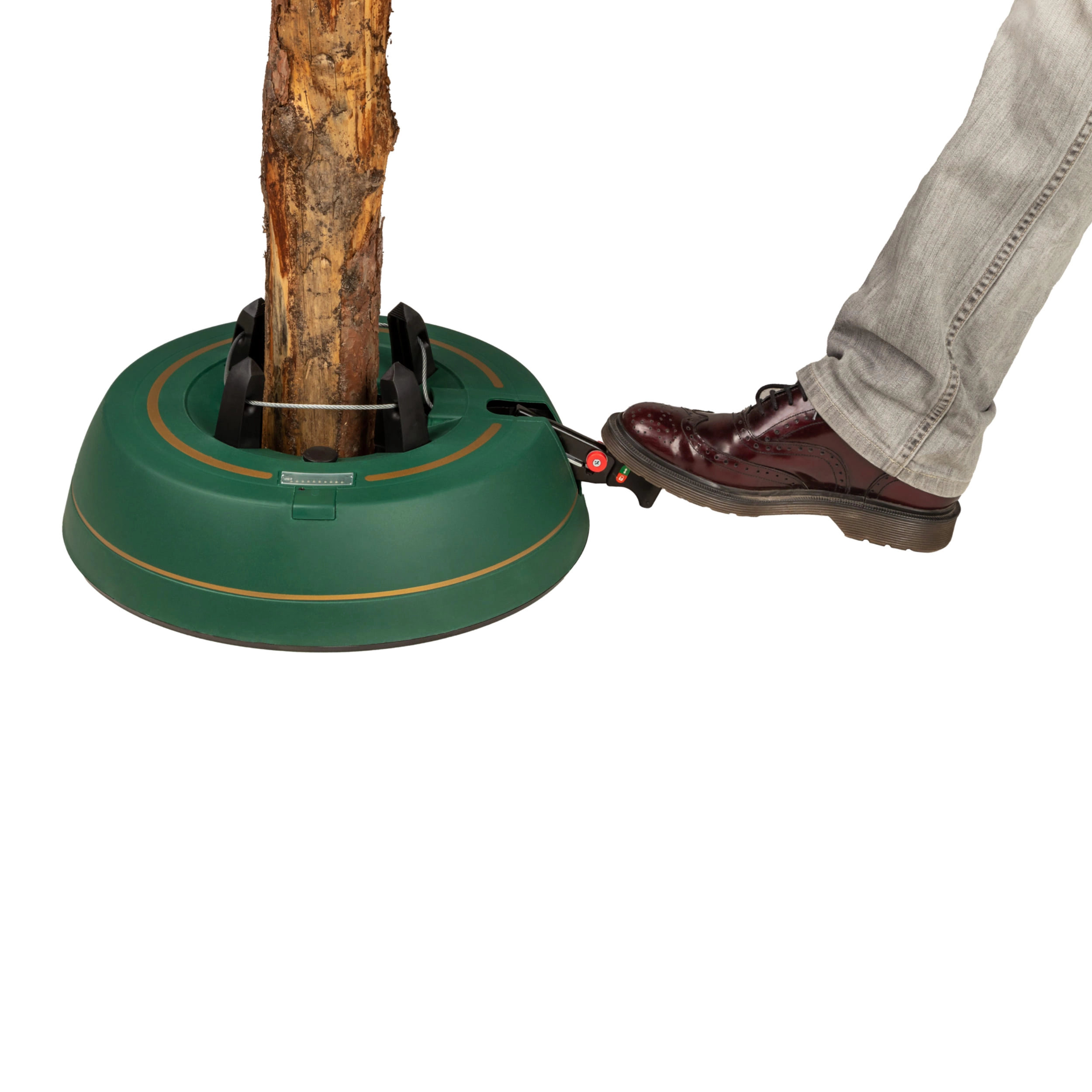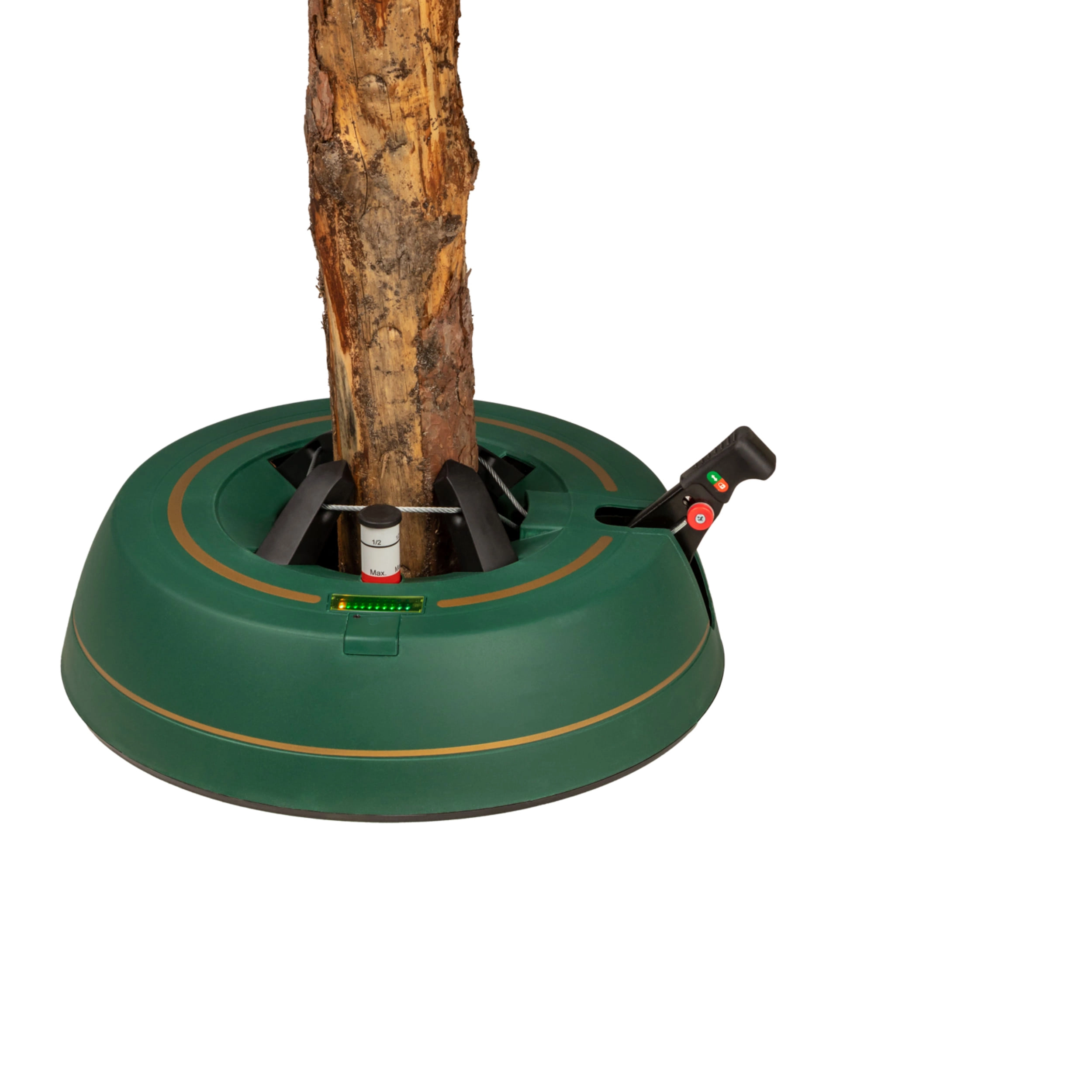 Széles, alacsony talapzat és erős befogó mechanizmus tartja a fát egyenesen még díszítés közben is. 3–11 cm törzsátmérőhöz alkalmas.