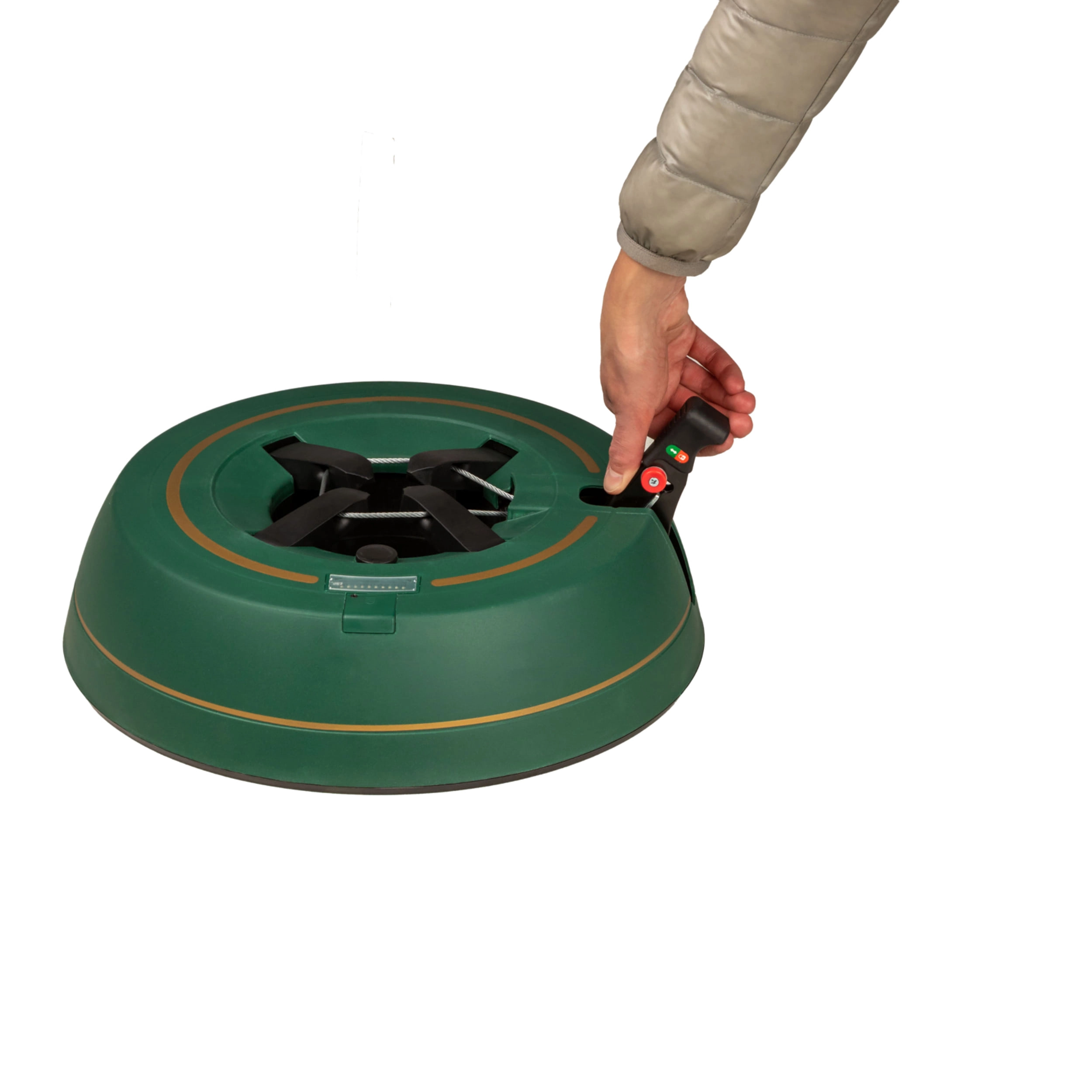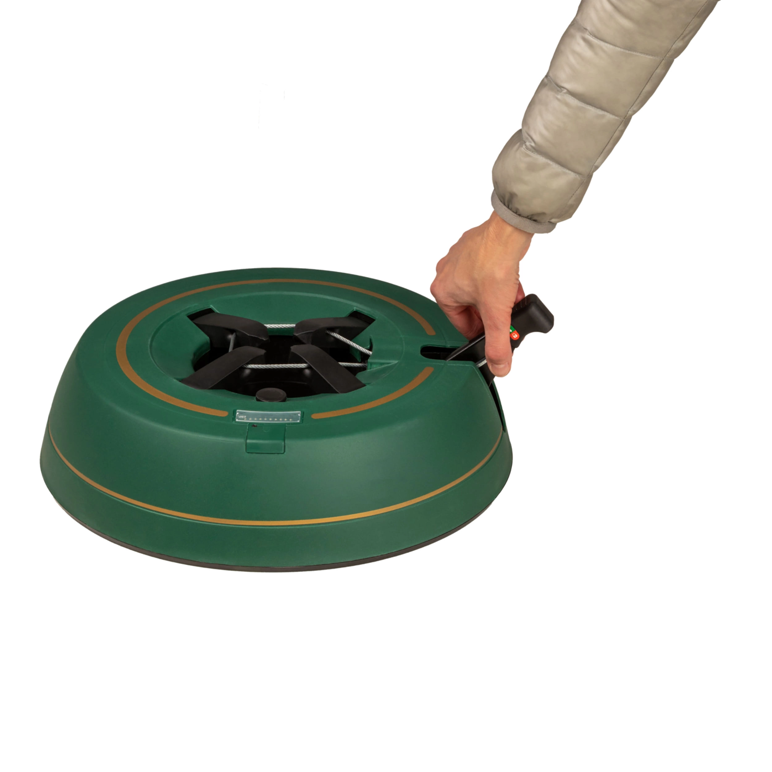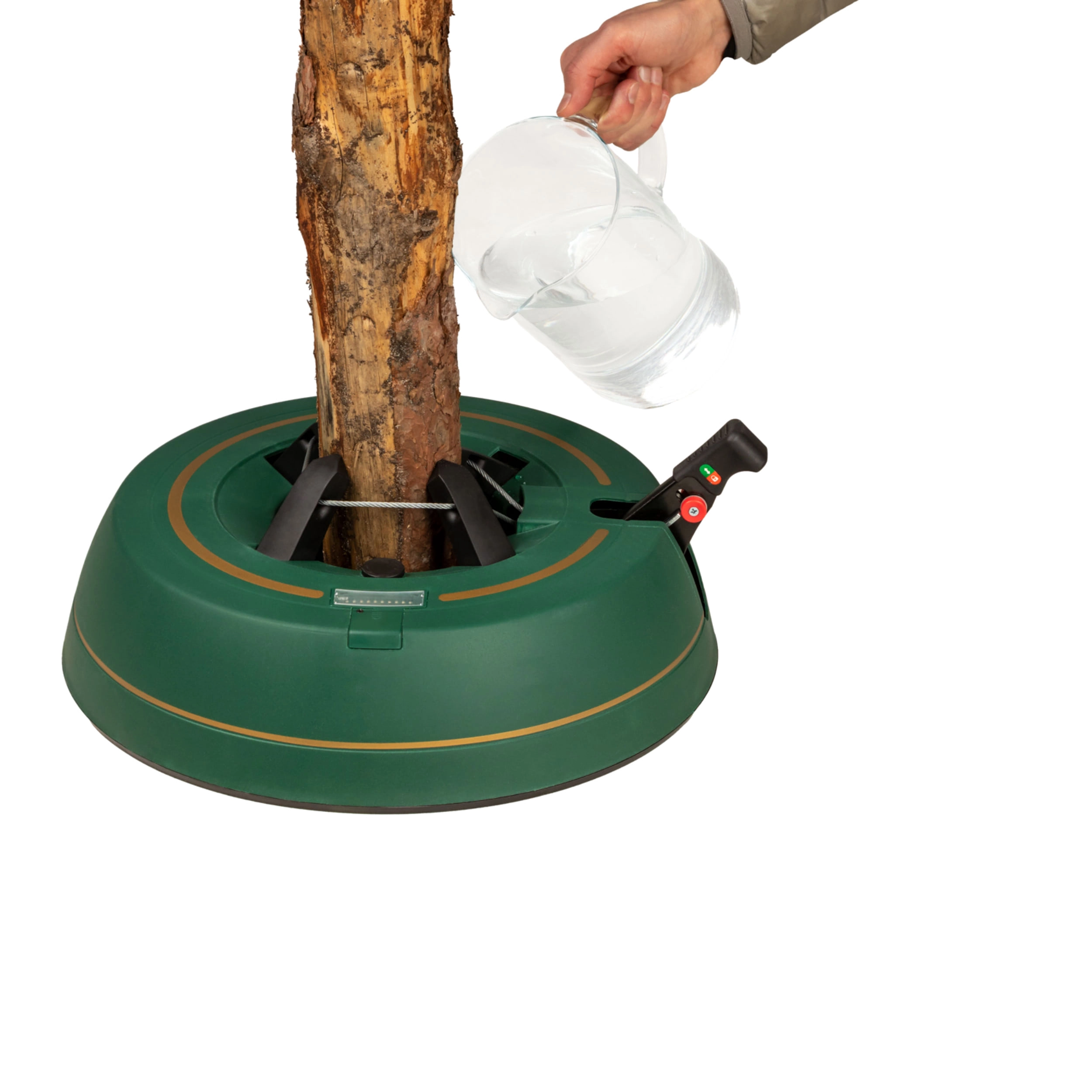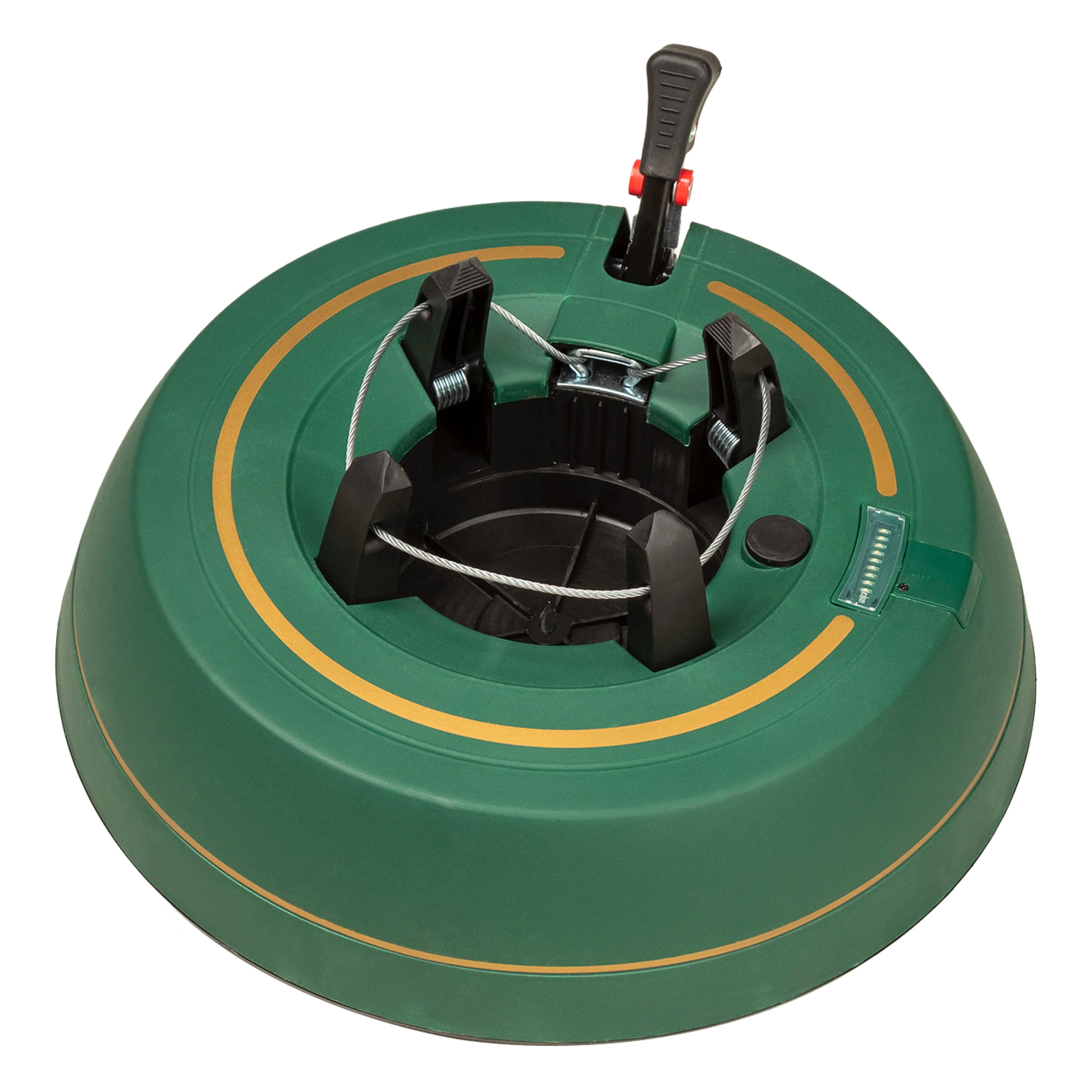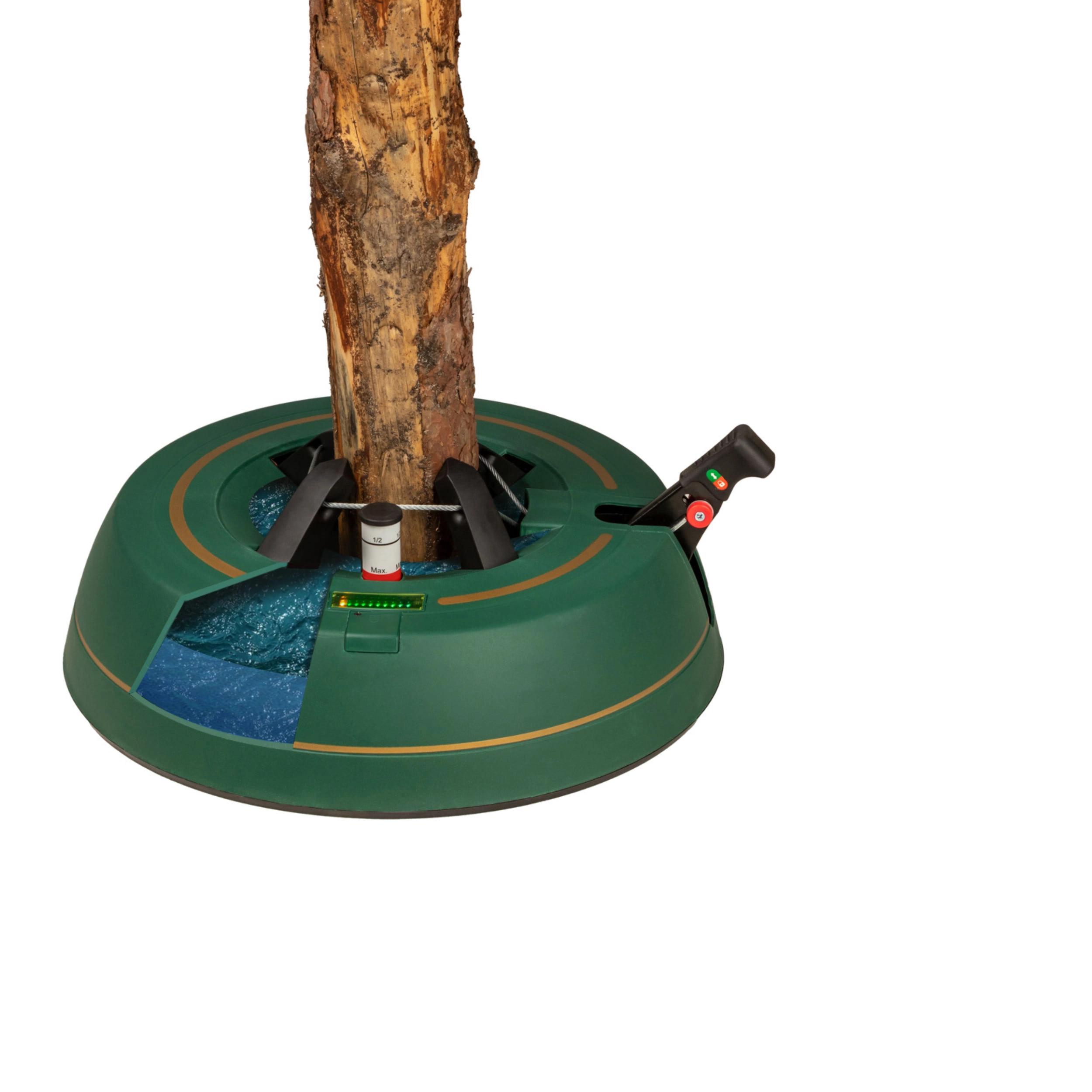 Széles, alacsony talapzat és erős befogó mechanizmus tartja a fát egyenesen még díszítés közben is. 3–11 cm törzsátmérőhöz alkalmas.