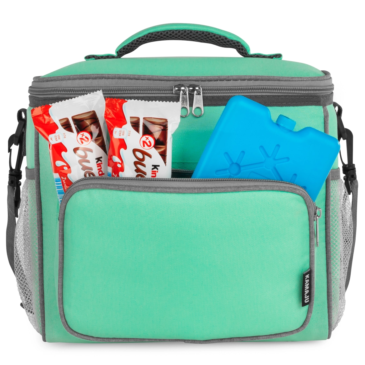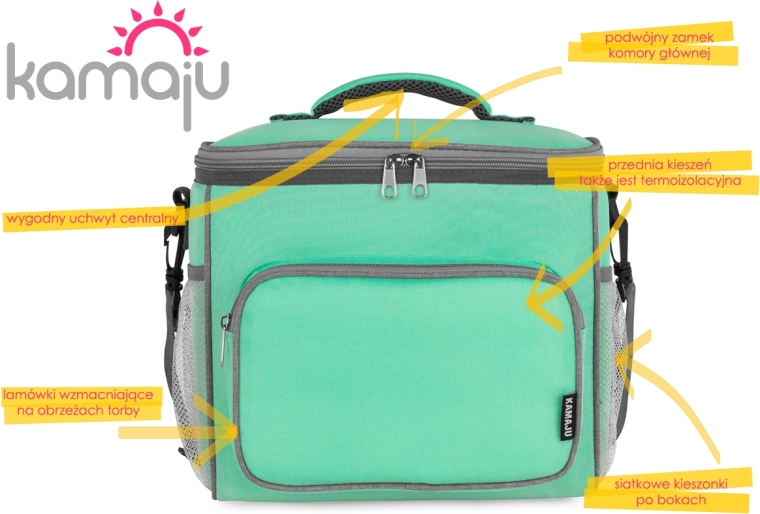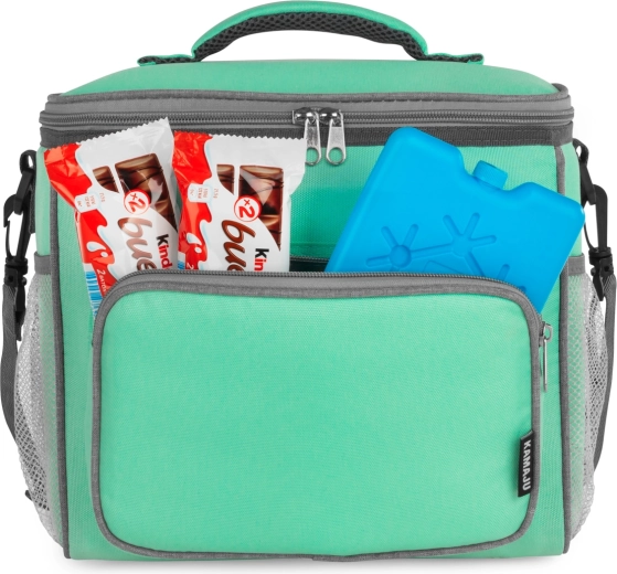 Megbízható táskát keres, amely útközben, munkában és kirándulásokon is megfelelő hőmérsékleten tartja a tartalmát? A KAMAJU hűtőtáska elegáns menta színben ötvözi a hatékony hőszigetelést, az átgondolt rendszerezést és a kényelmes hordozást. A tartós külső poliészter védi a kopástól, míg a termoizolációs belső réteg segít tovább frissen tartani a hideg és meleg ételeket.