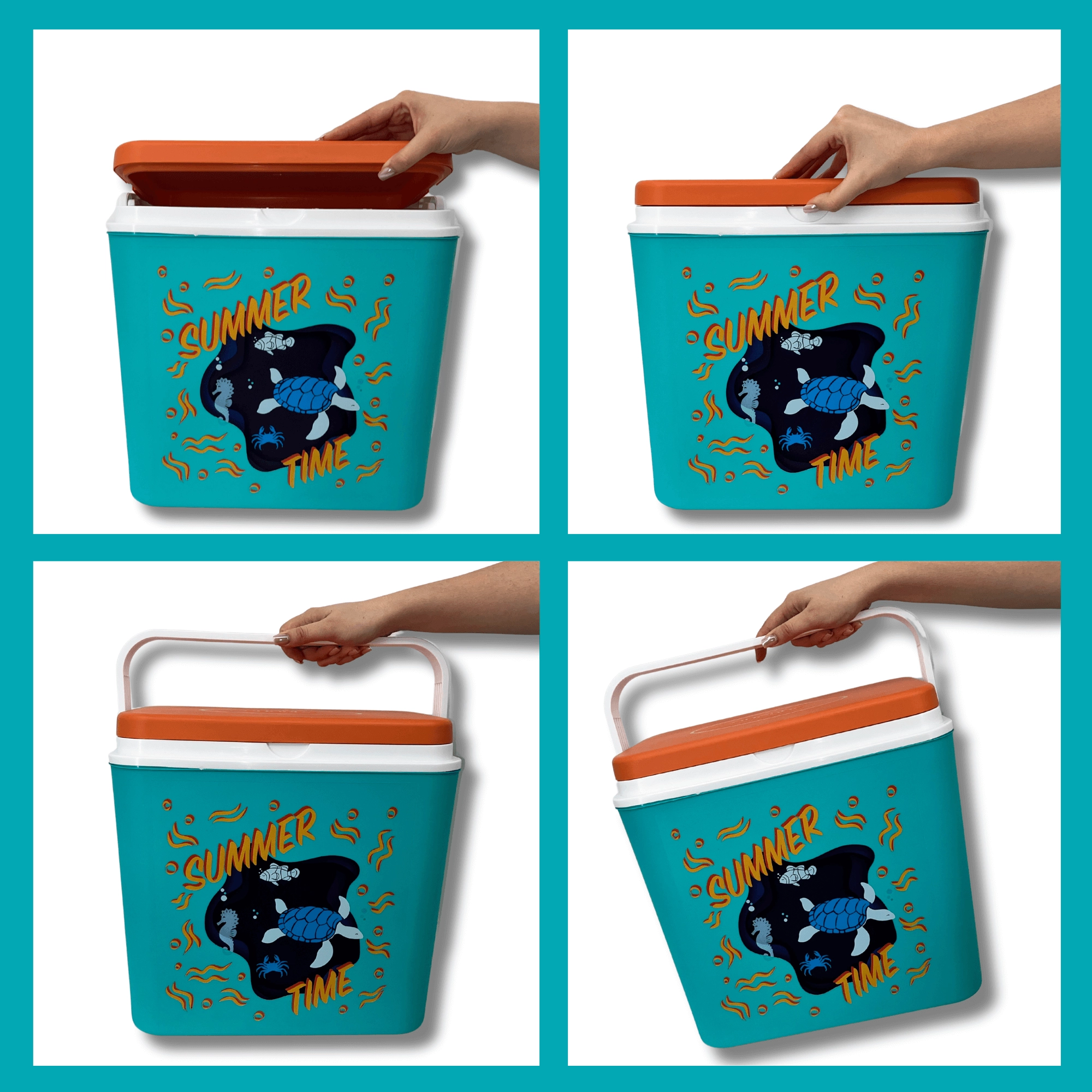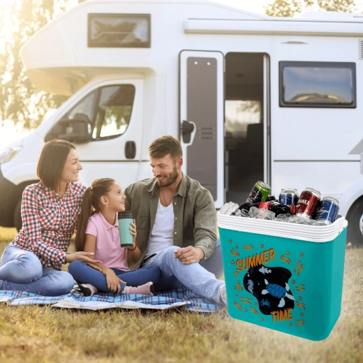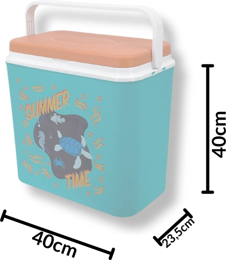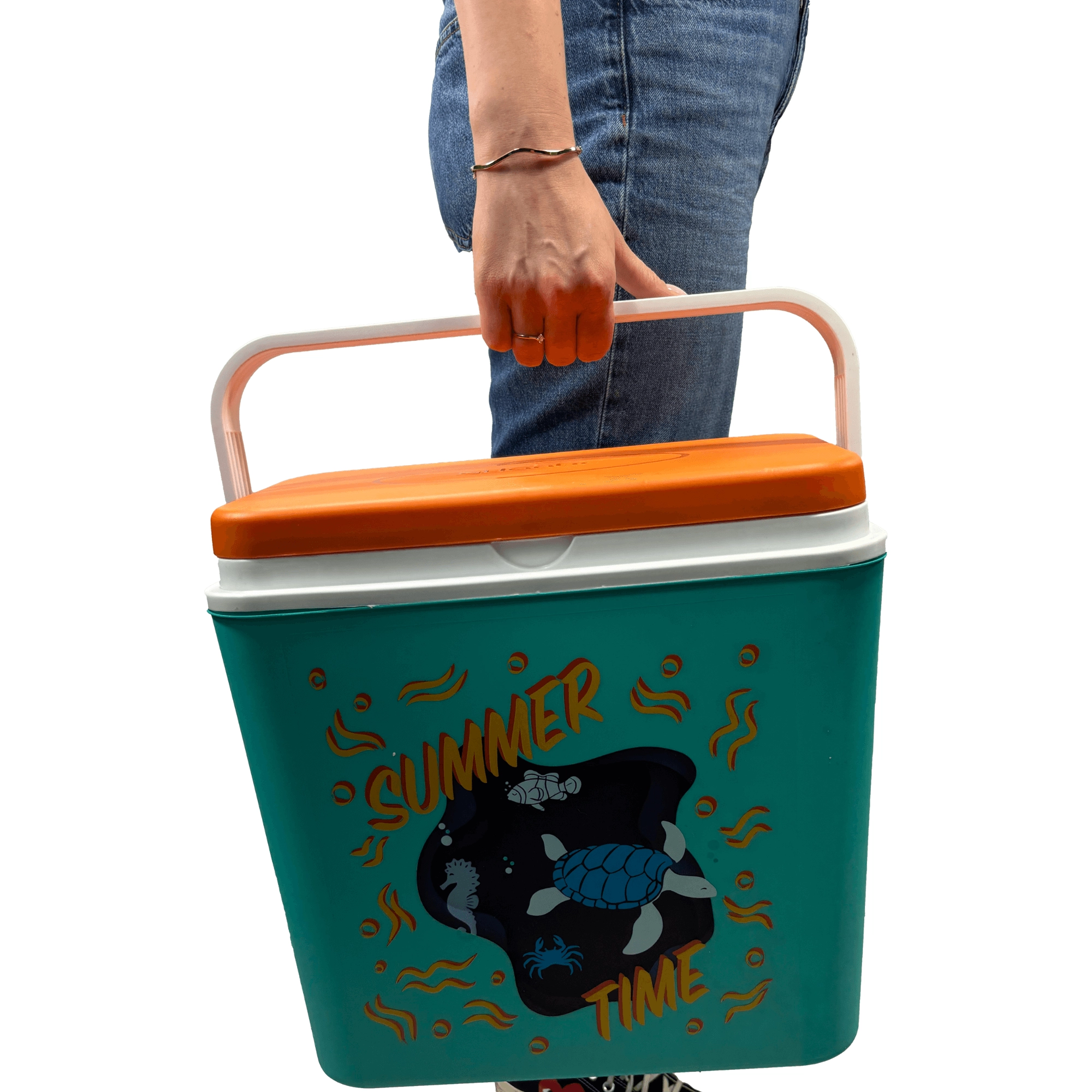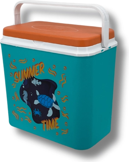 Stílusos hordozható hűtődoboz KAMAI ATLANTIC 24 l, amely az fejlett szigetelésnek és a hűtőbetétek használatának köszönhetően tovább hidegen tartja ételeit és italait. A kompakt méretek megkönnyítik a szállítást autóban, lakóautóban vagy hajón, míg az erős fogantyú kényelmes hordozást biztosít. A tengeri állatok motívumával és a SUMMER TIME felirattal díszített nyári design üdülős hangulatot kölcsönöz minden kirándulásnak. EU-ban készült, élelmiszerrel érintkezésre alkalmas.