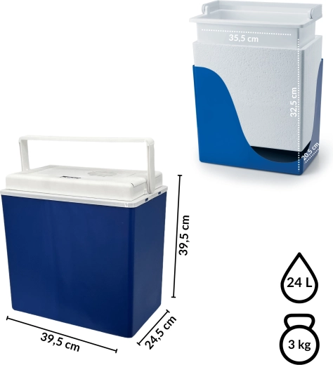 Kompakt és könnyű, 24 literes autós hűtőláda 12 V-os autós és 230 V-os hálózati tápellátással. A Peltier technológiának köszönhetően káros vegyi anyagok nélkül tovább frissen tartja az élelmiszereket és italokat. Kiváló szigeteléssel, praktikus, önkényes nyitás ellen biztosított fogantyúval rendelkezik, és 1,5 literes palackokat is elhelyez függőlegesen.