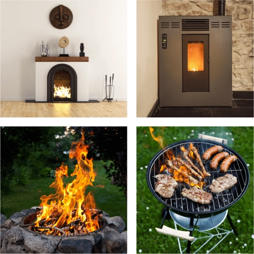 - Sokoldalú felhasználás: grill, kandalló, tűzrakóhely