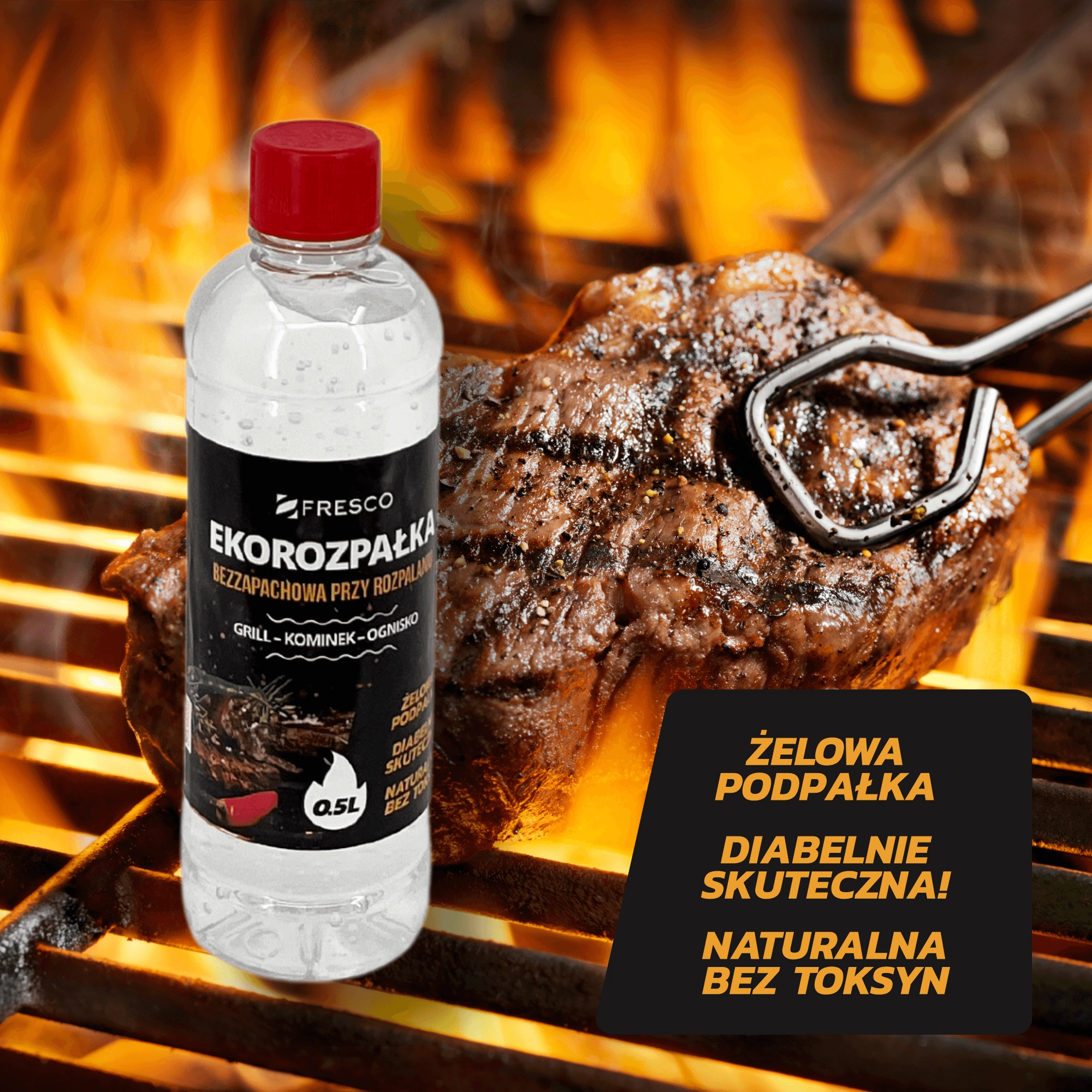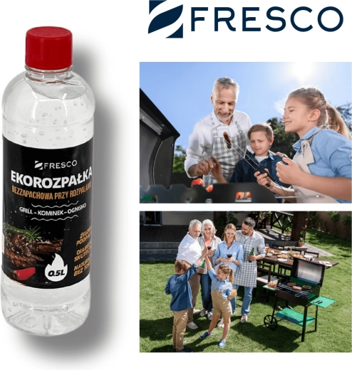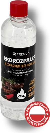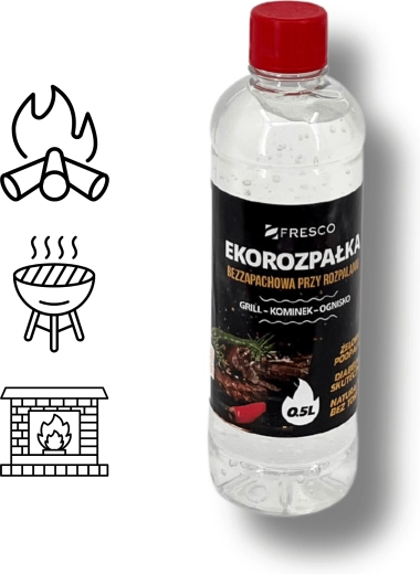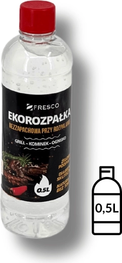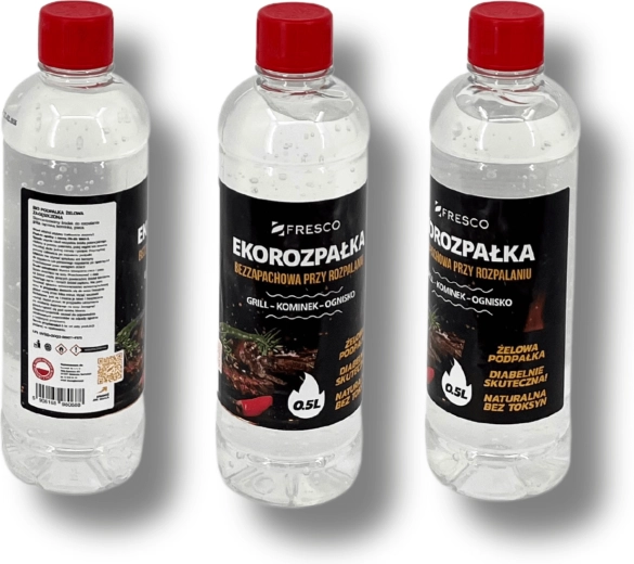 Praktikus FRESCO gyújtógél 0,5 l űrtartalommal a grill, a kandalló és a tűzrakóhely könnyű és gyors begyújtásához. Szagtalan, környezetbarát, toximentes összetétel és magas hatékonyság – ideális választás a kényelmes és tiszta grillezéshez.