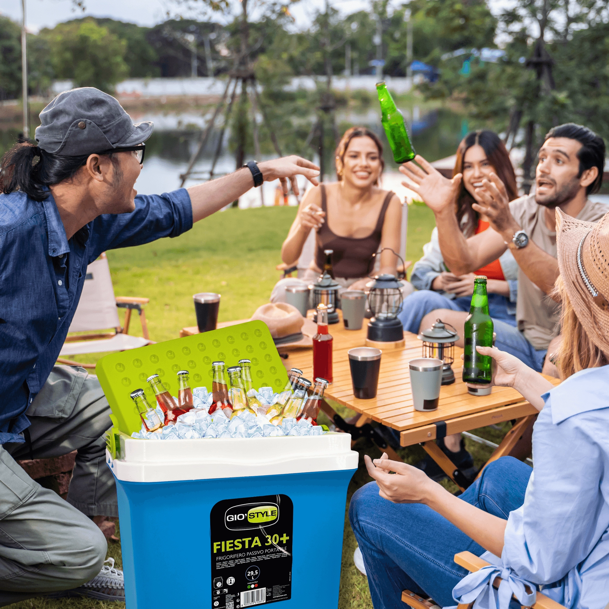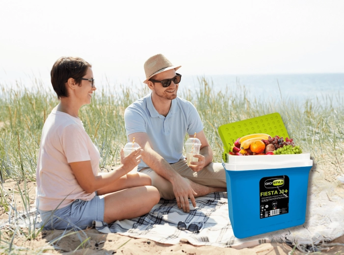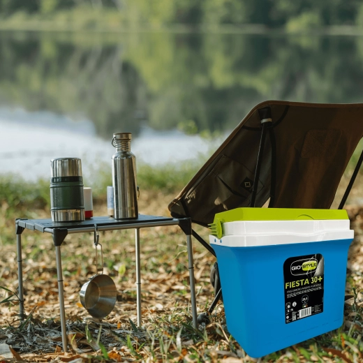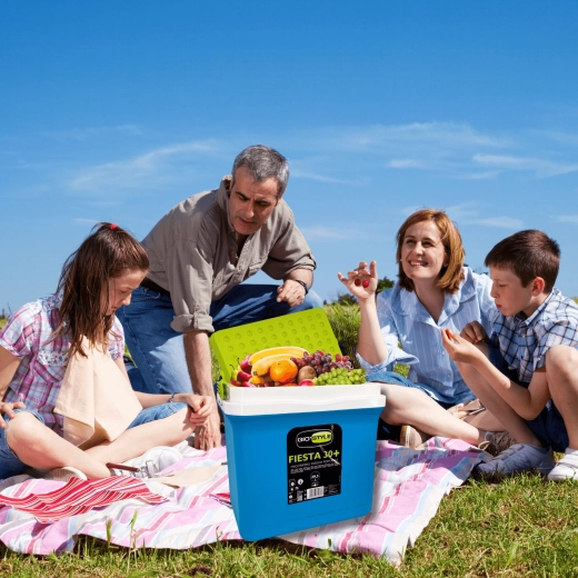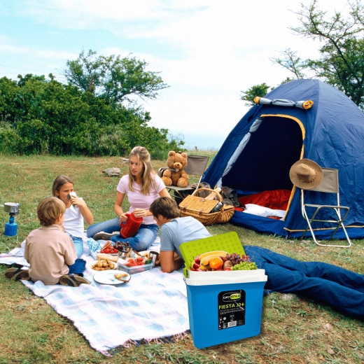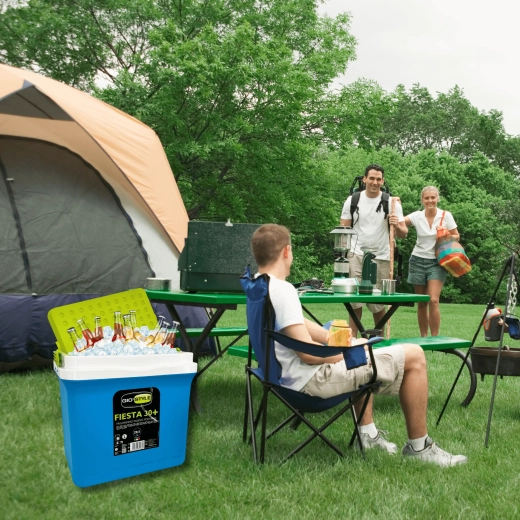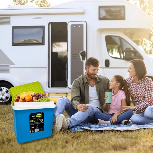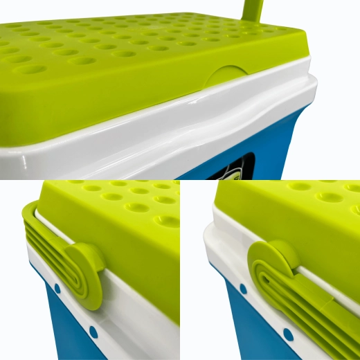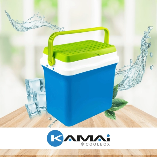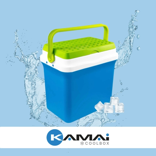 A KAMAI Fiesta 29,5 l hűtőláda kiváló arányt kínál kapacitás és méret között. Fejlett szigetelésének köszönhetően hosszú ideig alacsonyan tartja a hőmérsékletet, különösen fagyasztóbetétek használatával. A robusztus PP műanyag ház ütésálló, a zöld kontrasztú fedél elegáns és praktikus.