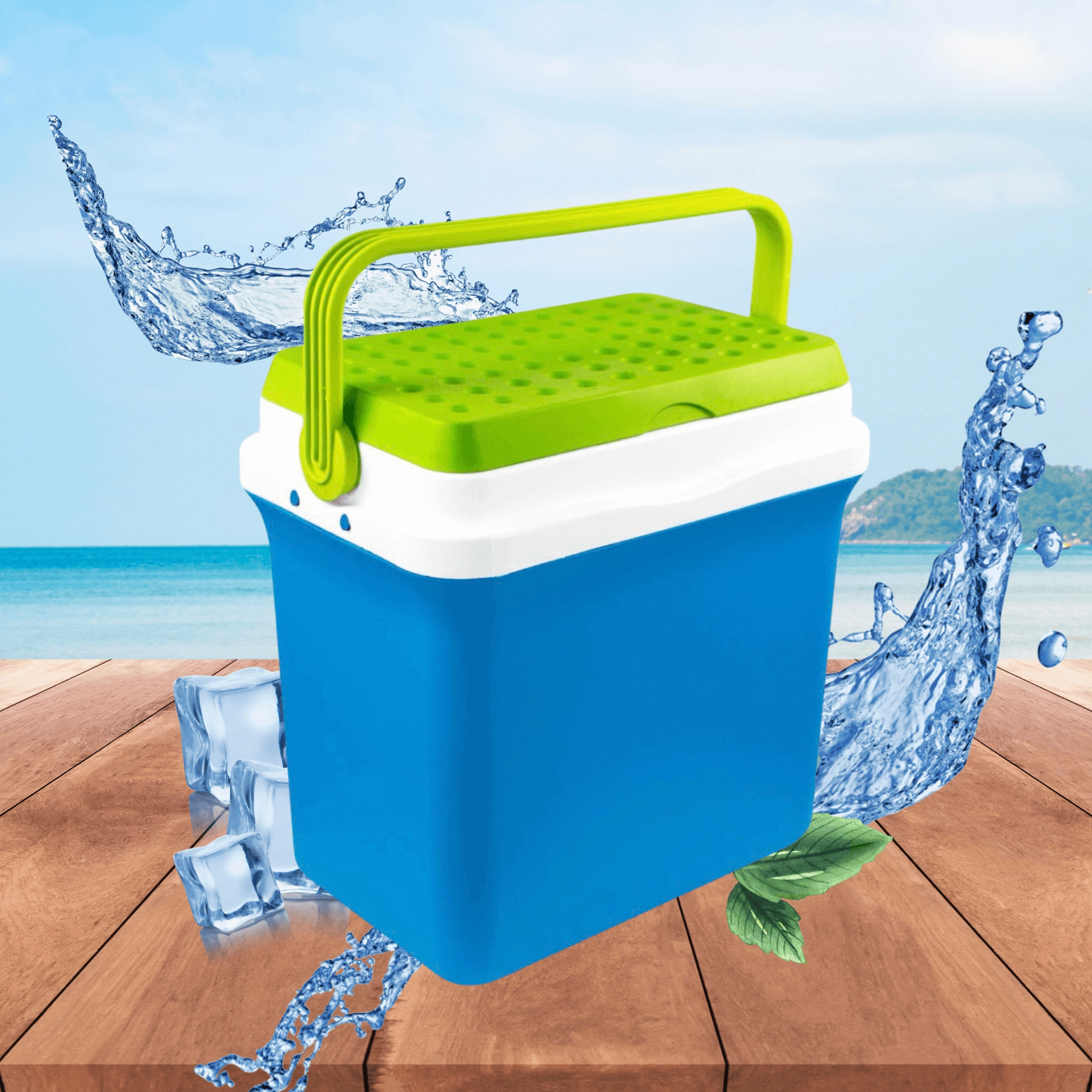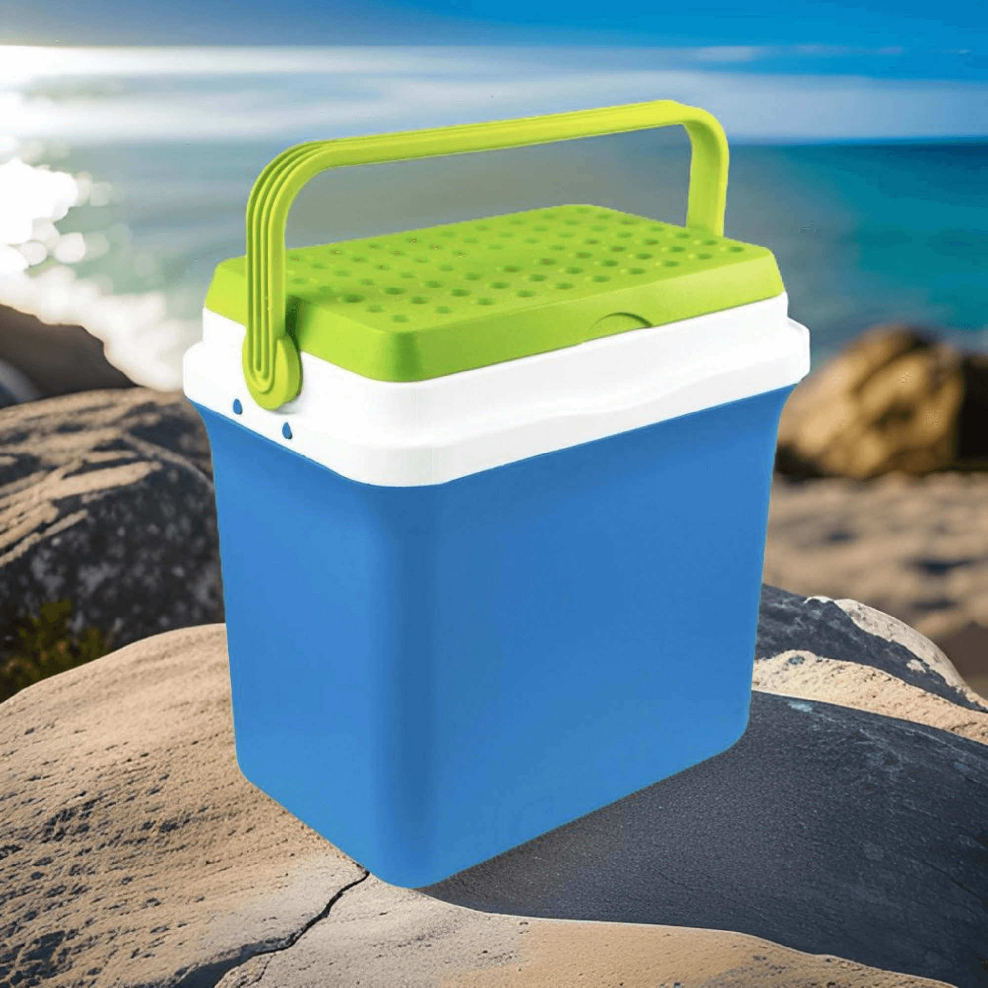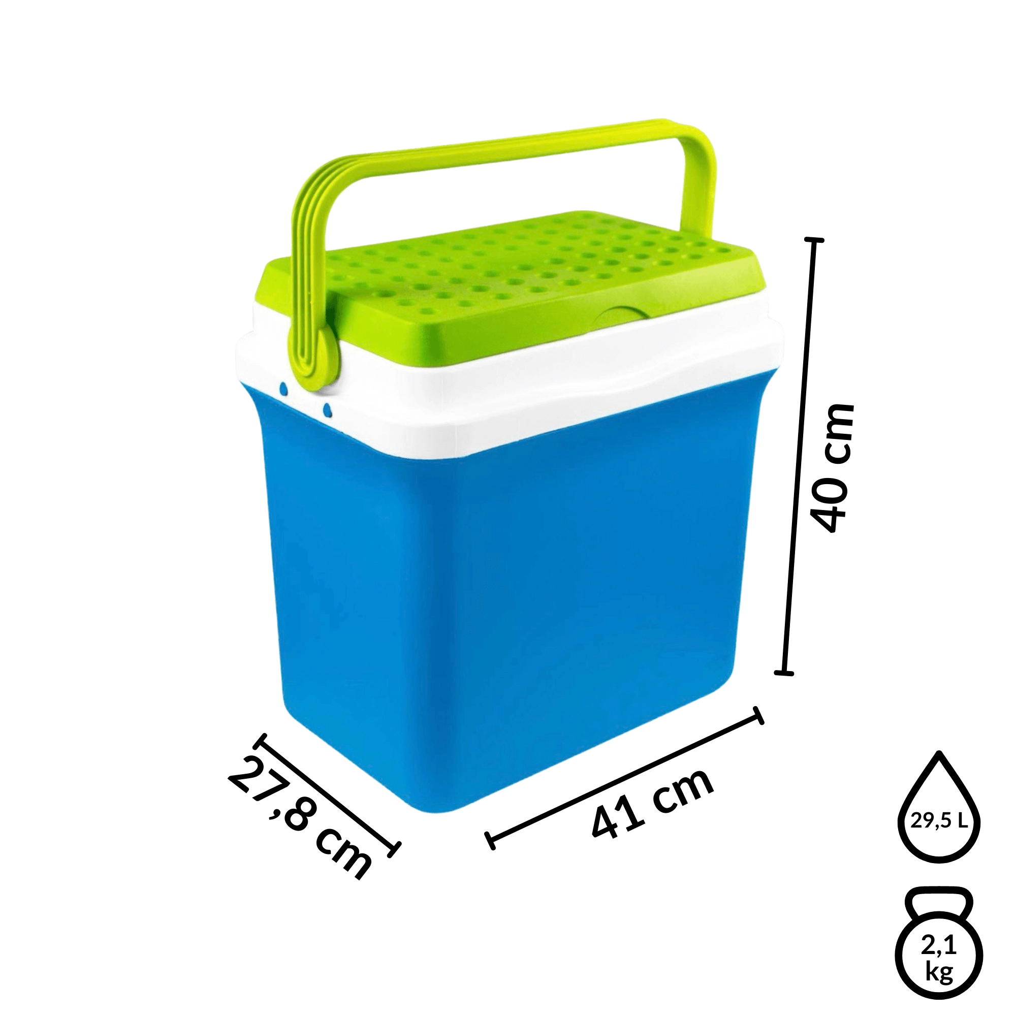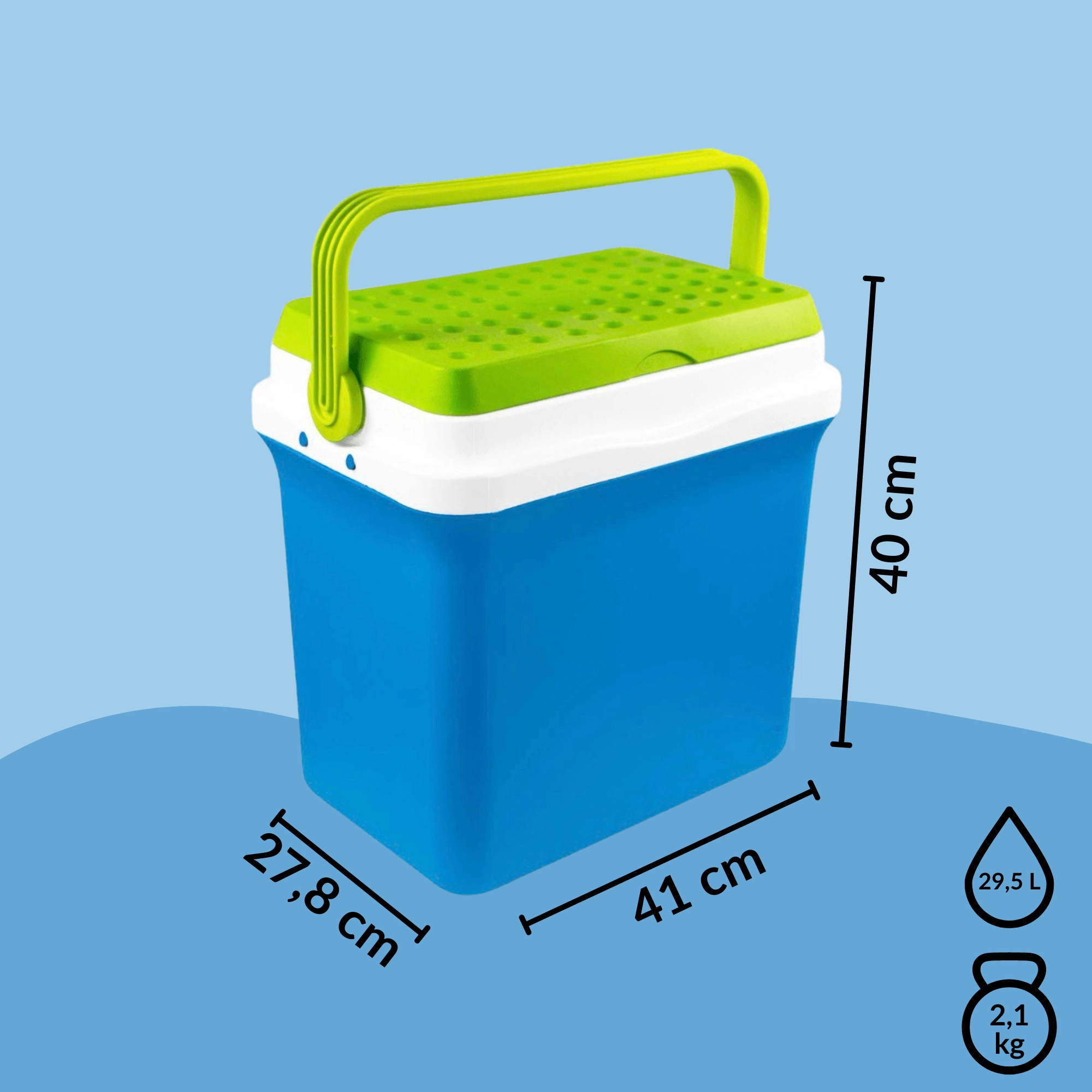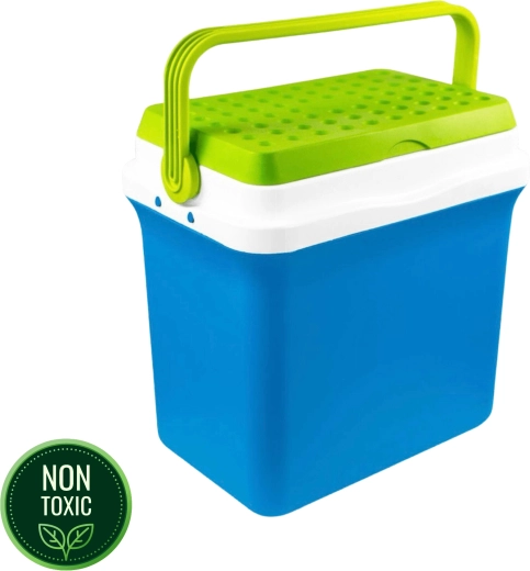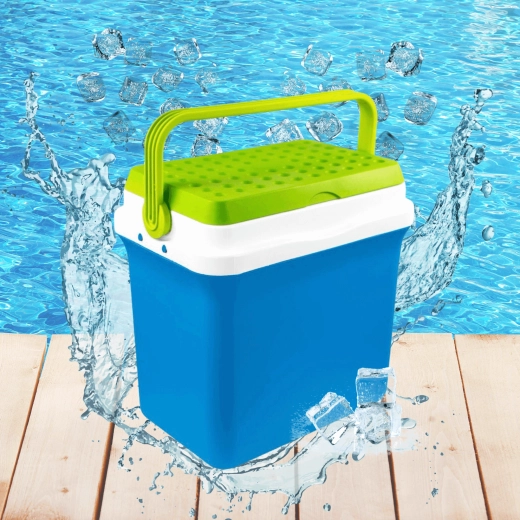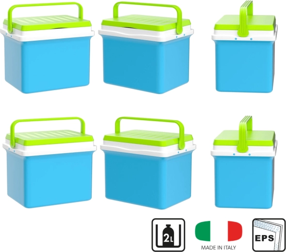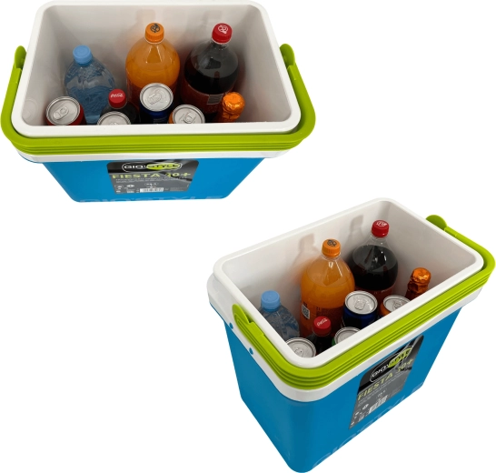 A kb. 35,5 cm belső magasság lehetővé teszi a 2 l-es palackok függőleges elhelyezését. Ideális palackokhoz, dobozos italokhoz és friss élelmiszerekhez. A lehajtható, formázott fogantyú megkönnyíti a hordozást, a kompakt méretek pedig az autó csomagtartójában, lakókocsiban vagy csónakban való elhelyezést.