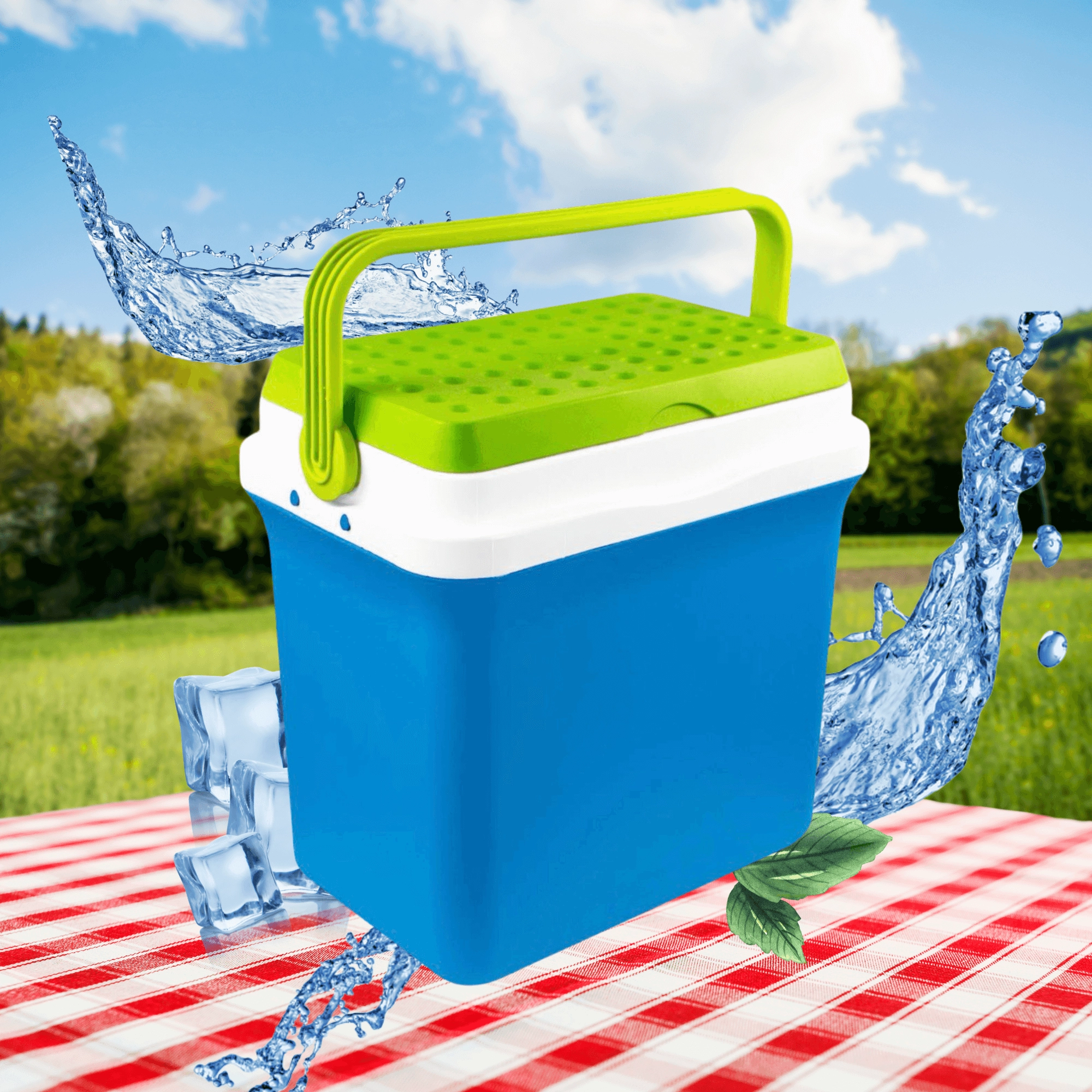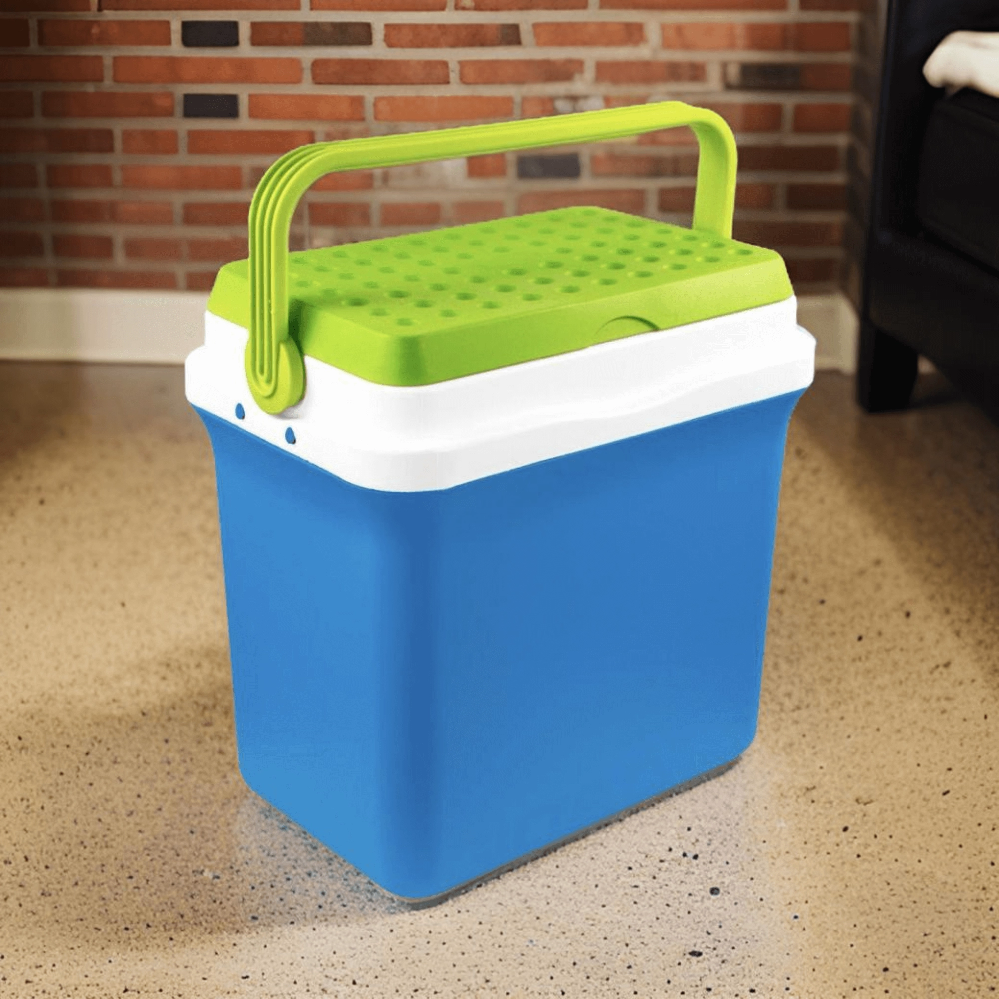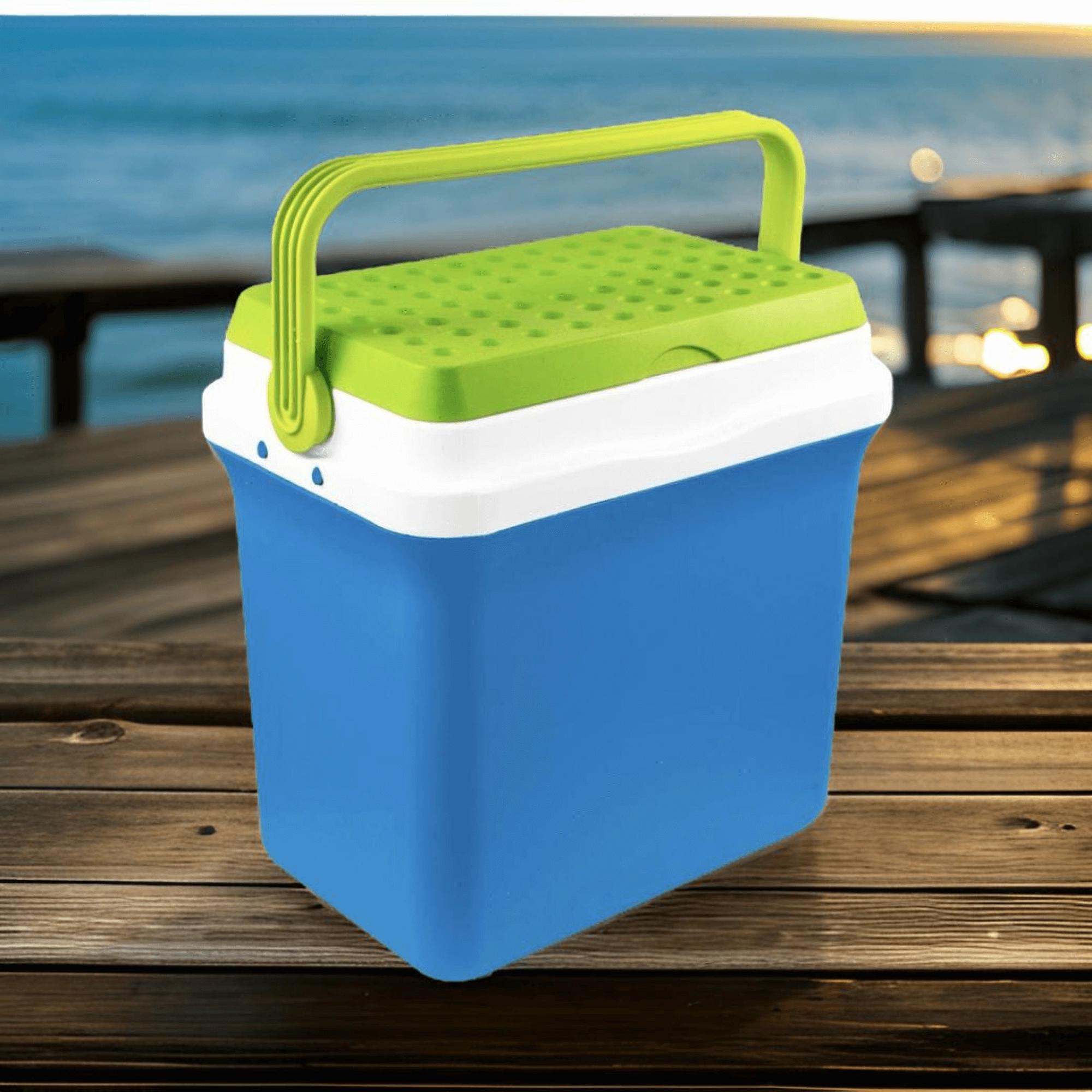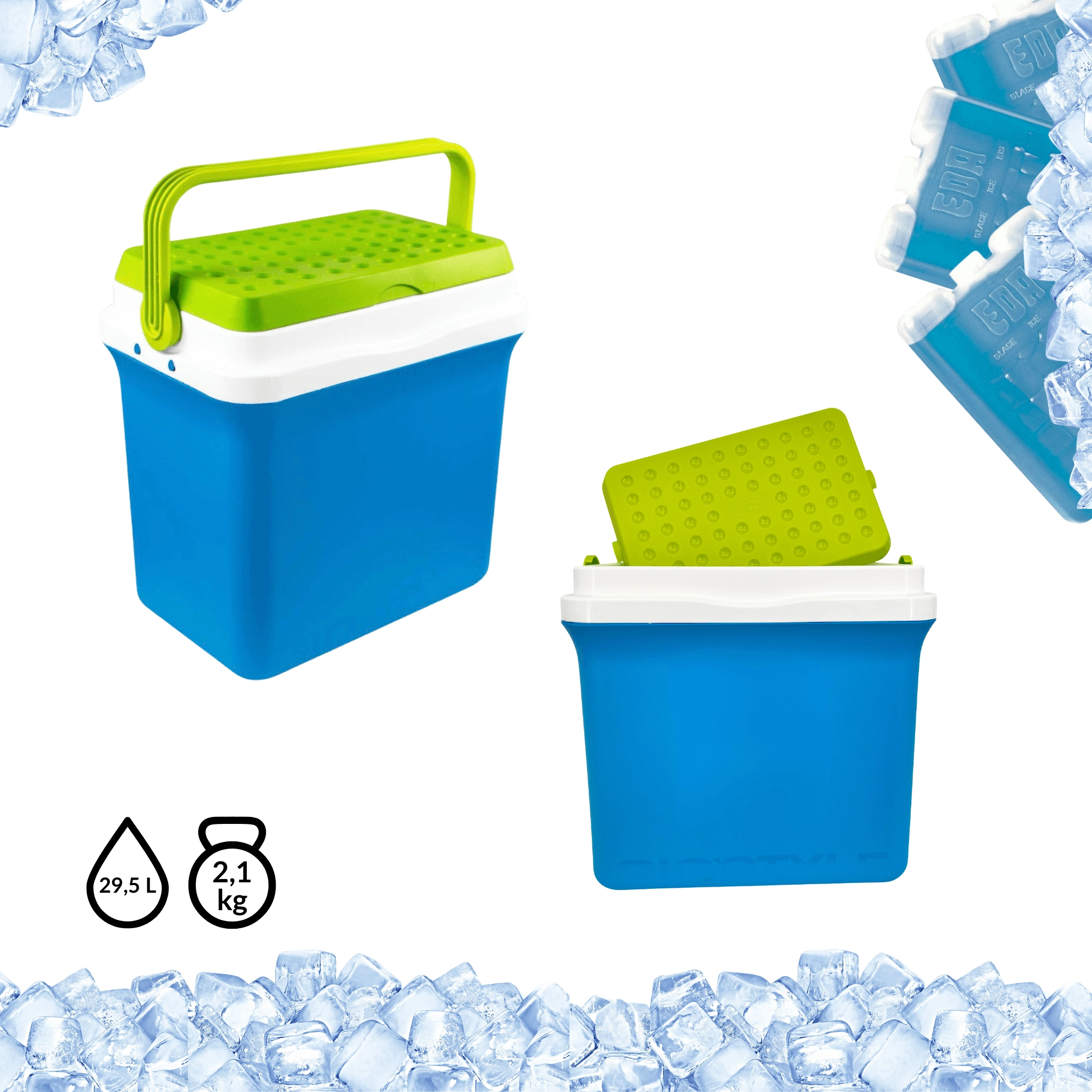 A kb. 35,5 cm belső magasság lehetővé teszi a 2 l-es palackok függőleges elhelyezését. Ideális palackokhoz, dobozos italokhoz és friss élelmiszerekhez. A lehajtható, formázott fogantyú megkönnyíti a hordozást, a kompakt méretek pedig az autó csomagtartójában, lakókocsiban vagy csónakban való elhelyezést.