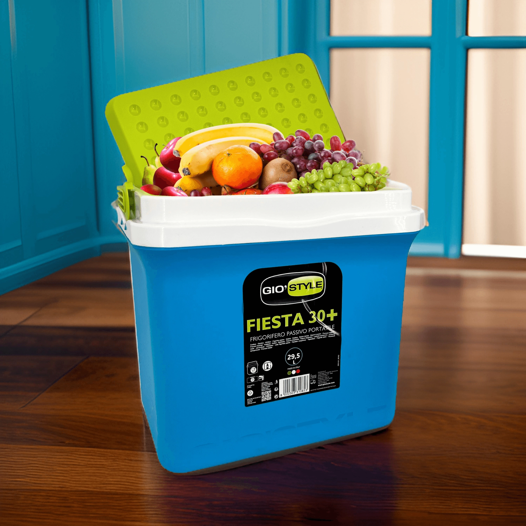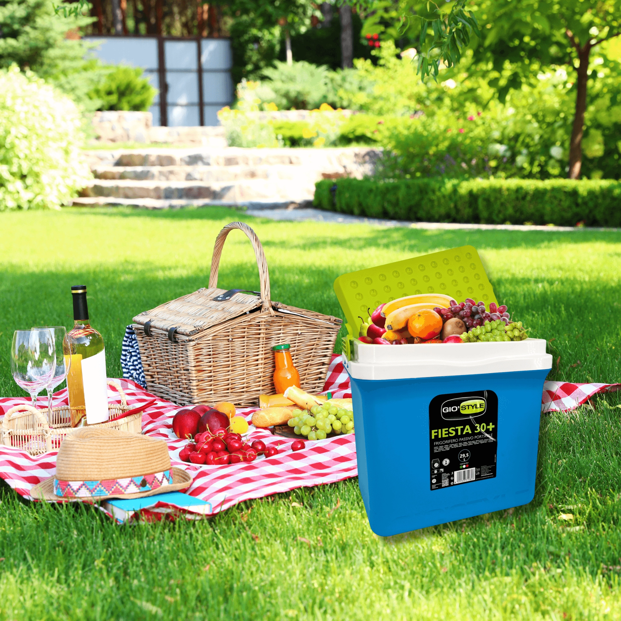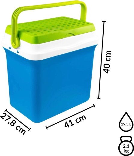 A 29,5 l-es űrtartalom elég mindhez, ami egy piknikhez vagy hétvégéhez kell. A kb. 35,5 cm belső magasság lehetővé teszi a 2 l-es palackok álló elhelyezését.
