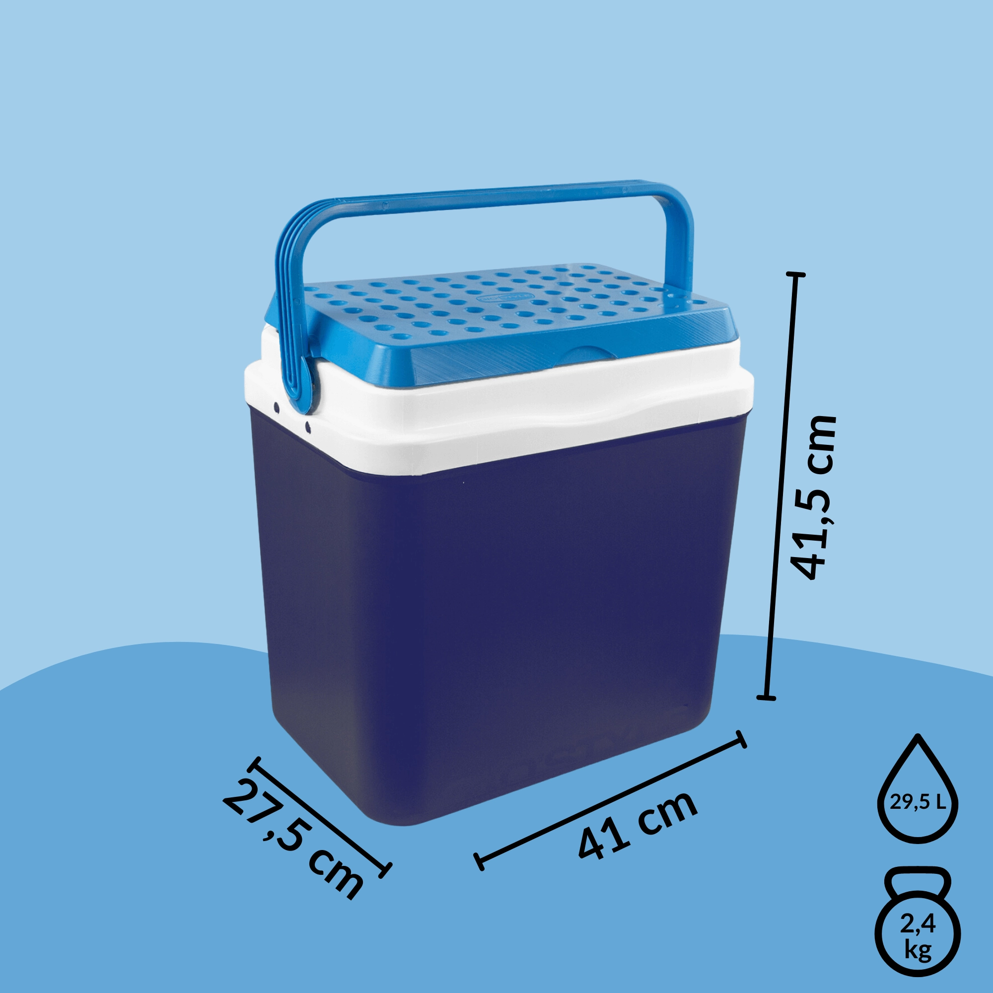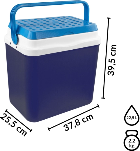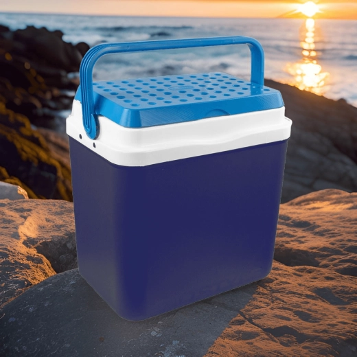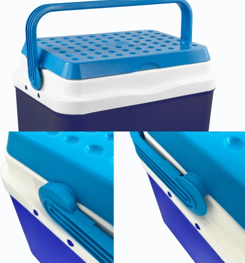 A KAMAI BRAVO 29,5 l hűtőláda ideális társ piknikhez, strandra, kempingezéshez és hosszú utakhoz. Fejlett szigetelése megbízhatóan alacsony hőmérsékleten tart hosszú időn át, és elfér benne minden a harapnivalóktól az italos palackokig. Elegáns kék kivitel azúr fedéllel és formázott fogantyúval, amely kiemeli a modern megjelenést és a könnyű hordozhatóságot.