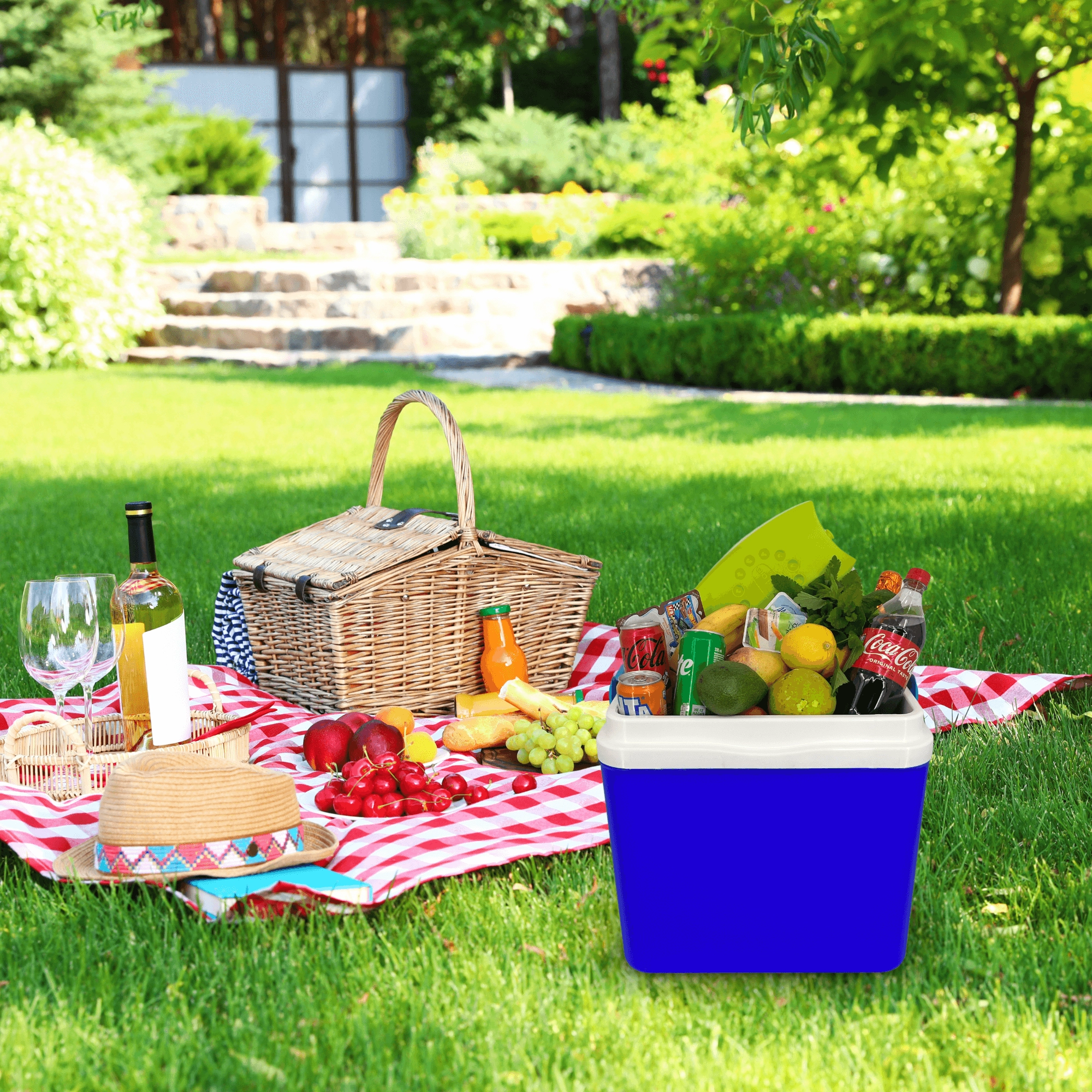 Az ital- és pohártartókkal integrált fedél növeli a stabilitást, a masszív, lehajtható fogantyú pedig megkönnyíti a hordozást vízpartra, strandra vagy piknikre.