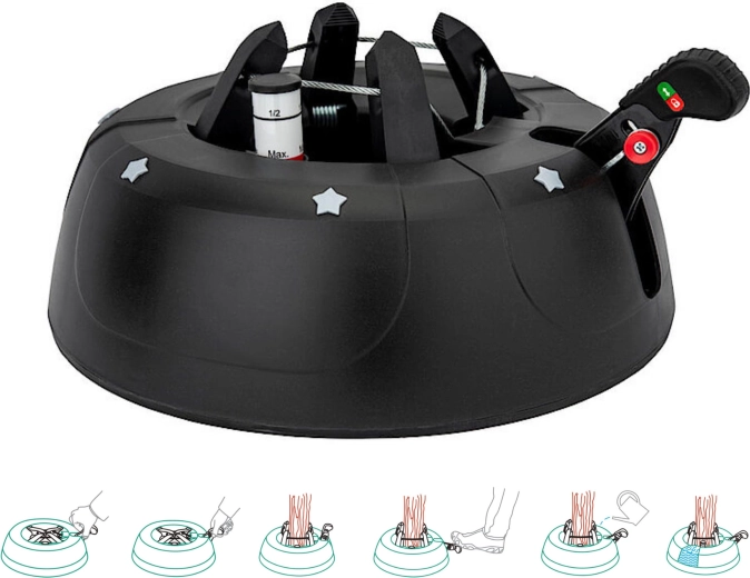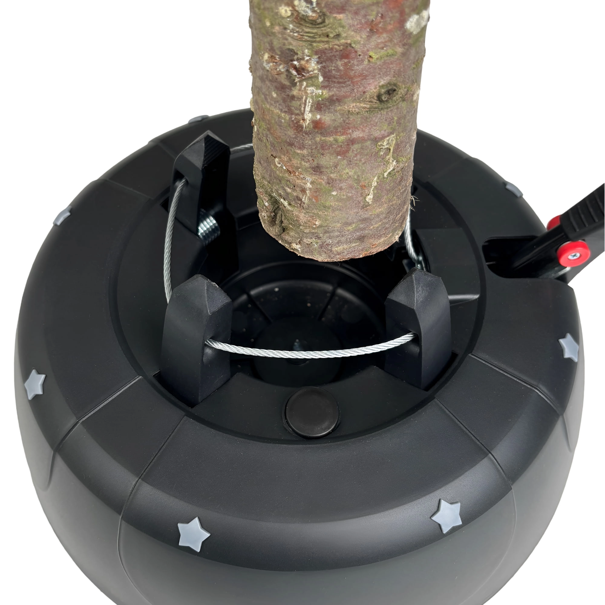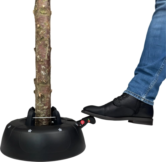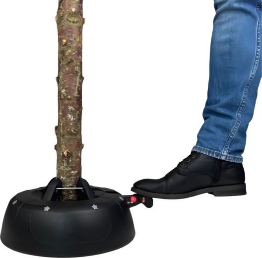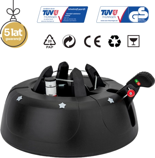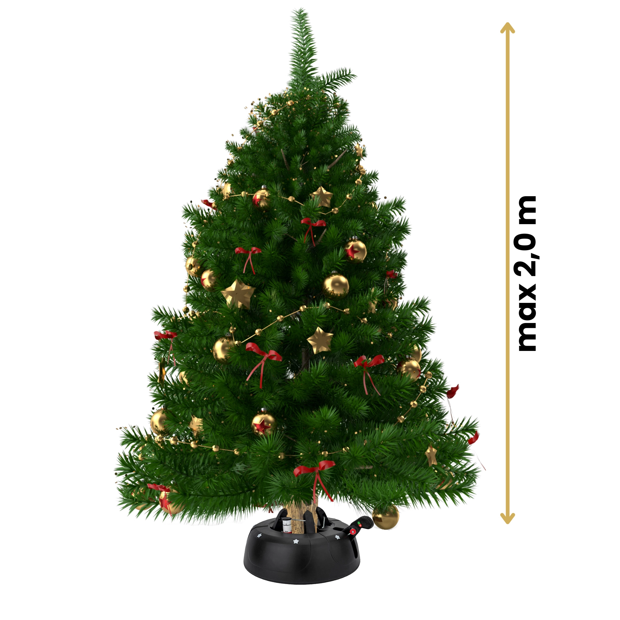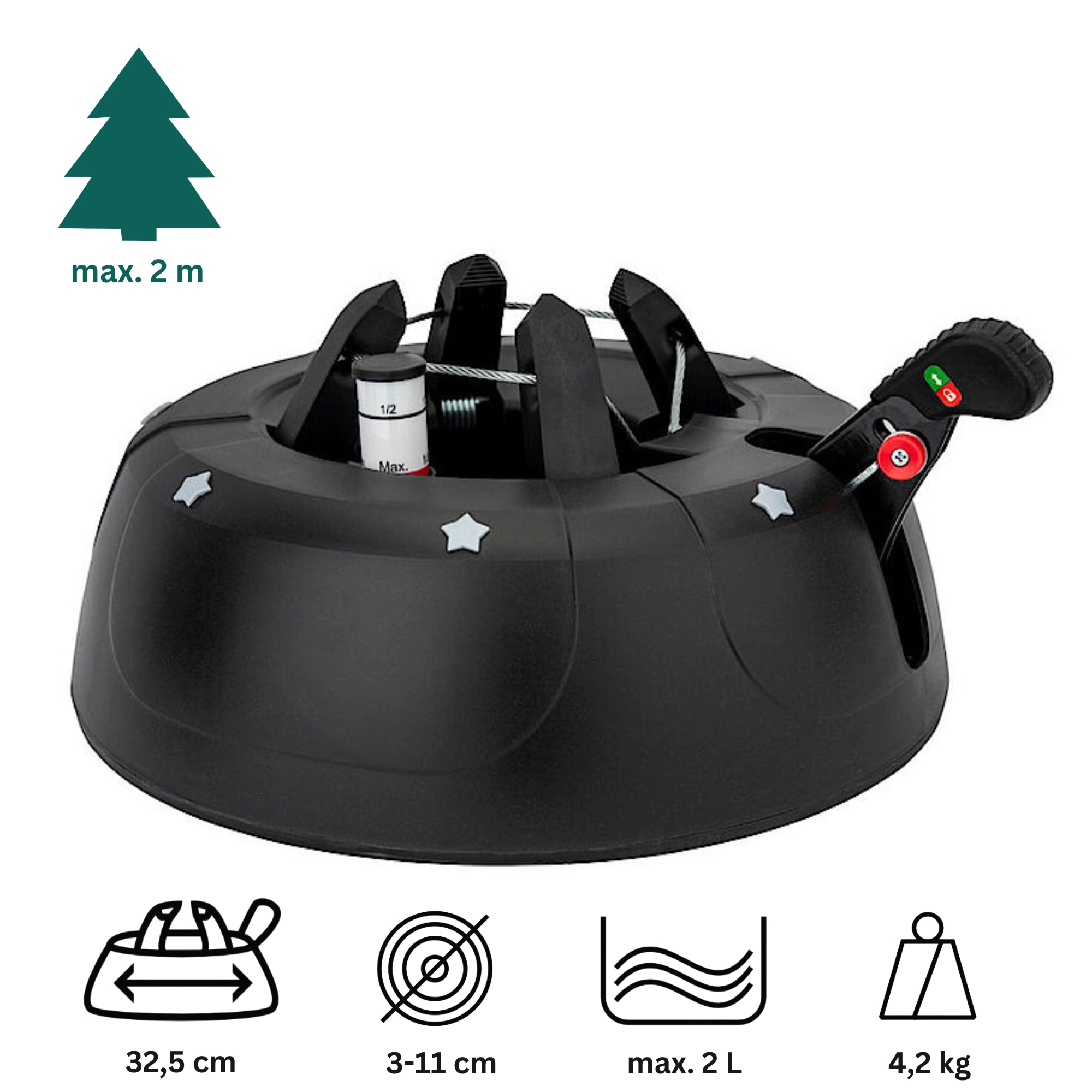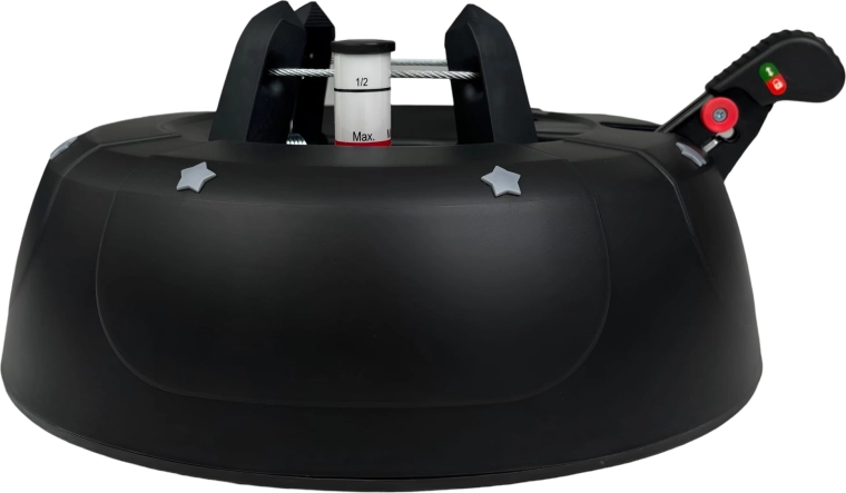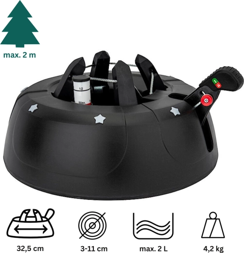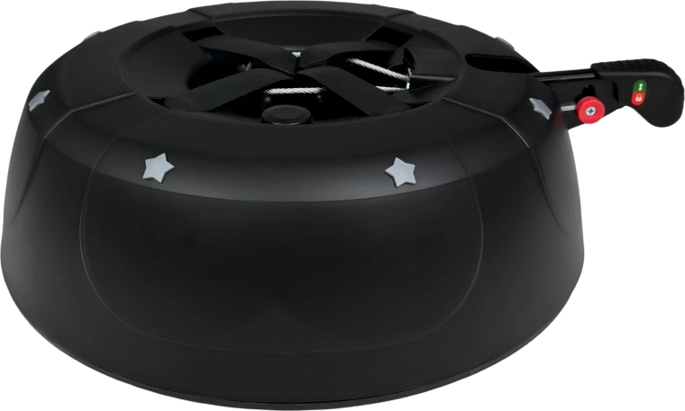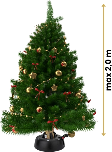 A széles és nehéz alap (4,2 kg, 34 cm átmérő) biztos rögzítést ad a legfeljebb 2 m magas fának, és kényelmes használatot nyújt az ünnepek alatt.