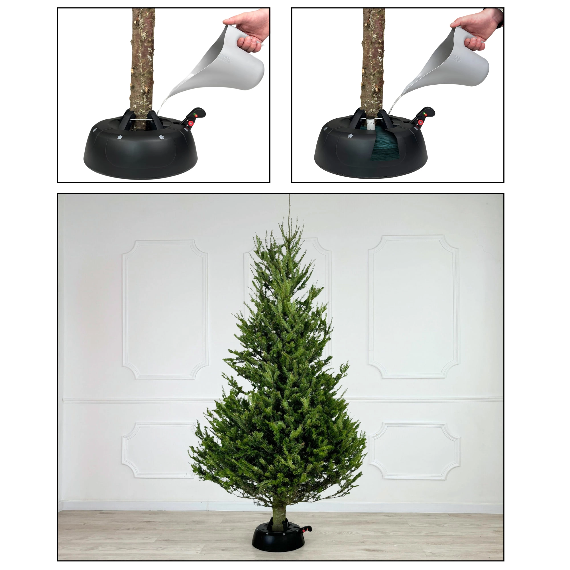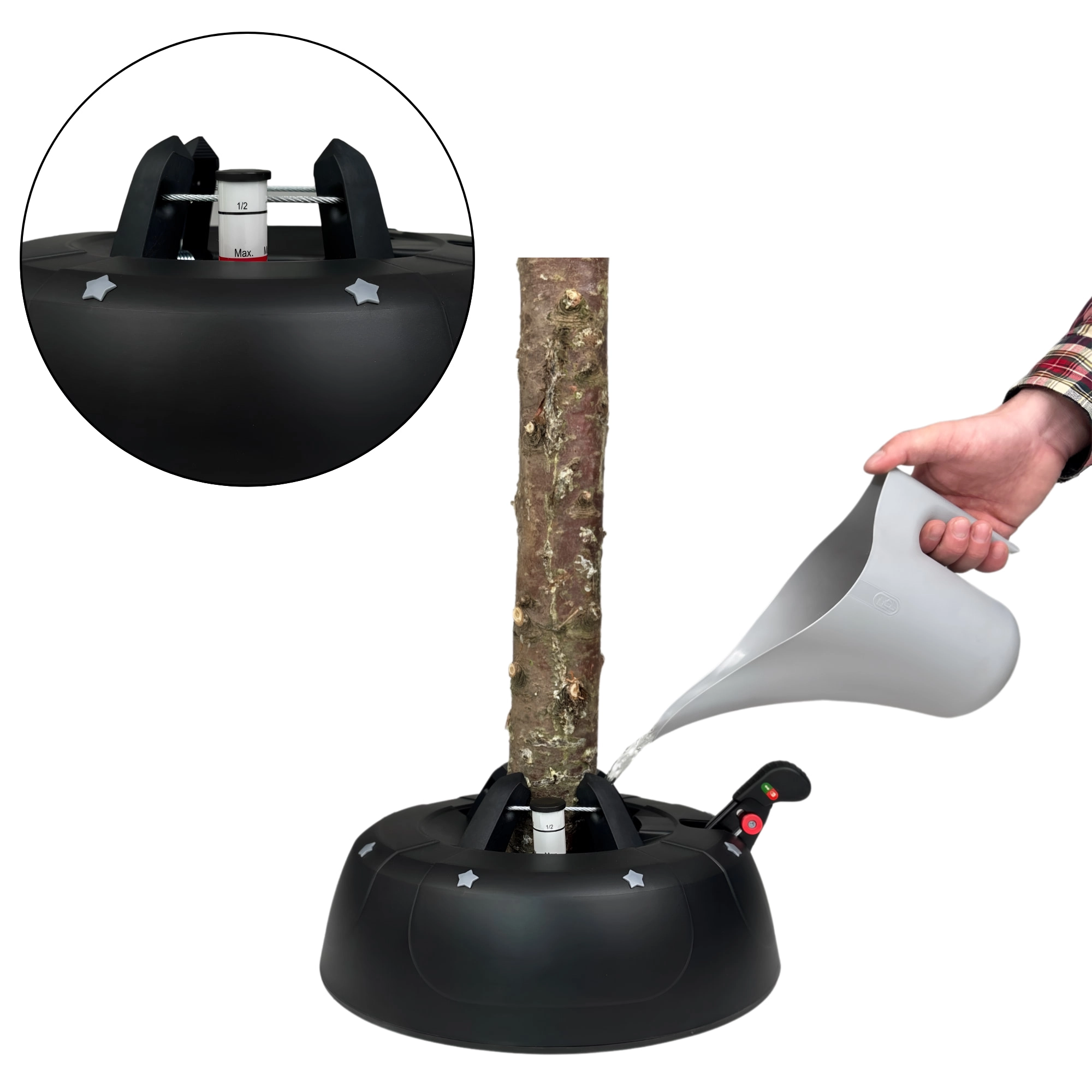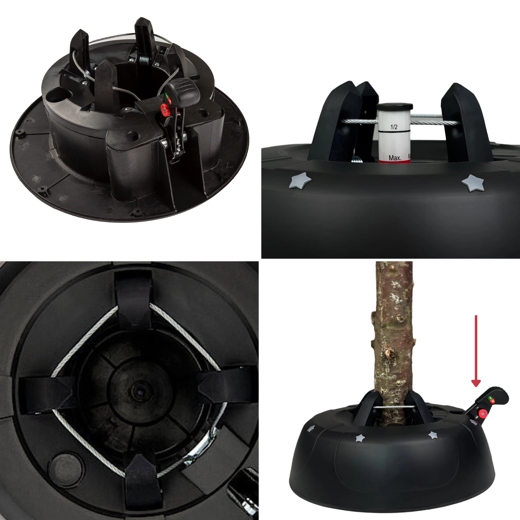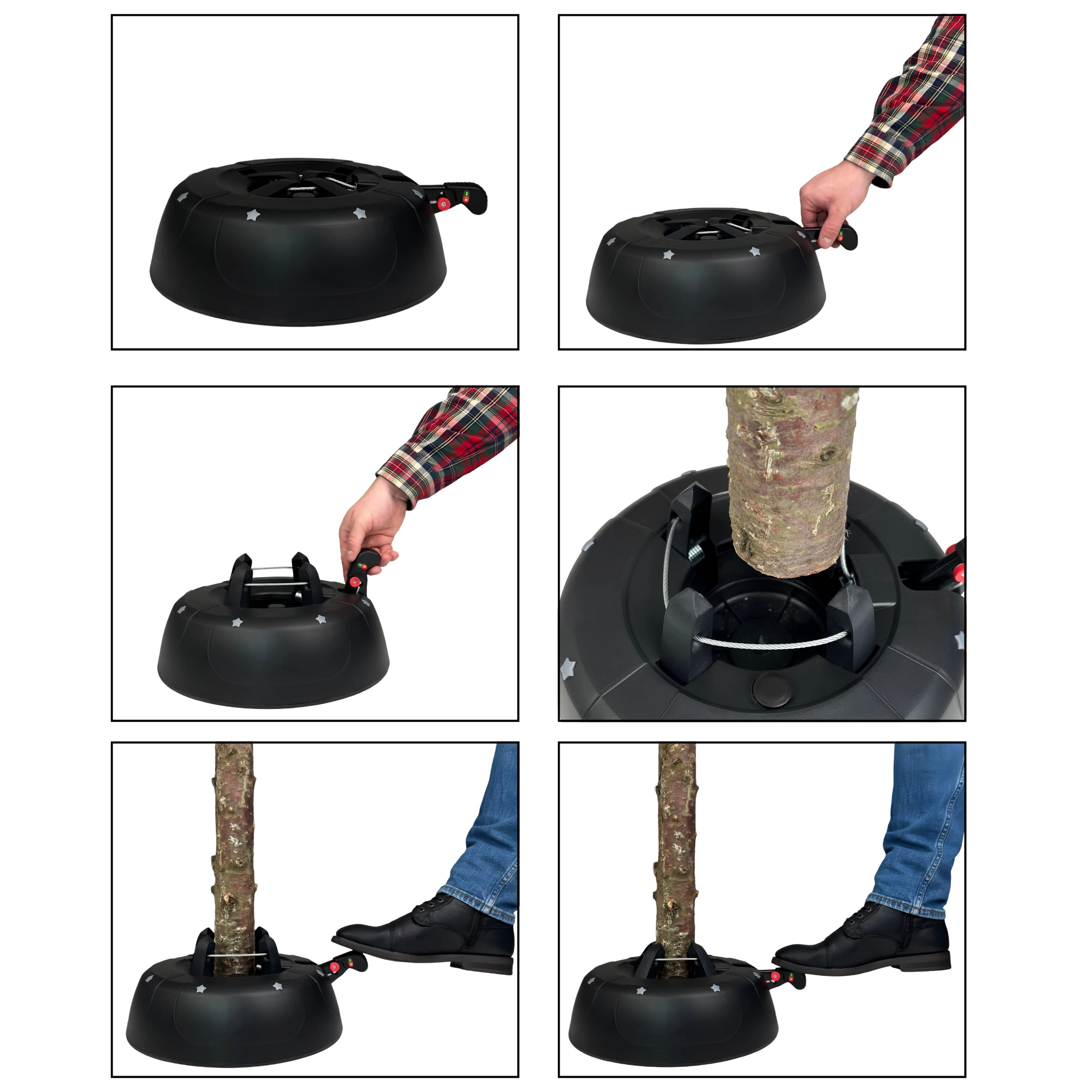 Élvezze a gondtalan ünnepeket egy olyan állvánnyal, amely mindenre gondol – a fa gyors rögzítésétől a hosszan tartó frissességig. A szabadalmaztatott négy automatikus acélkampós rendszer másodpercek alatt szorosan megfogja a törzset, míg a széles és nehéz alap az egész karácsonyi időszakban stabilitást garantál.