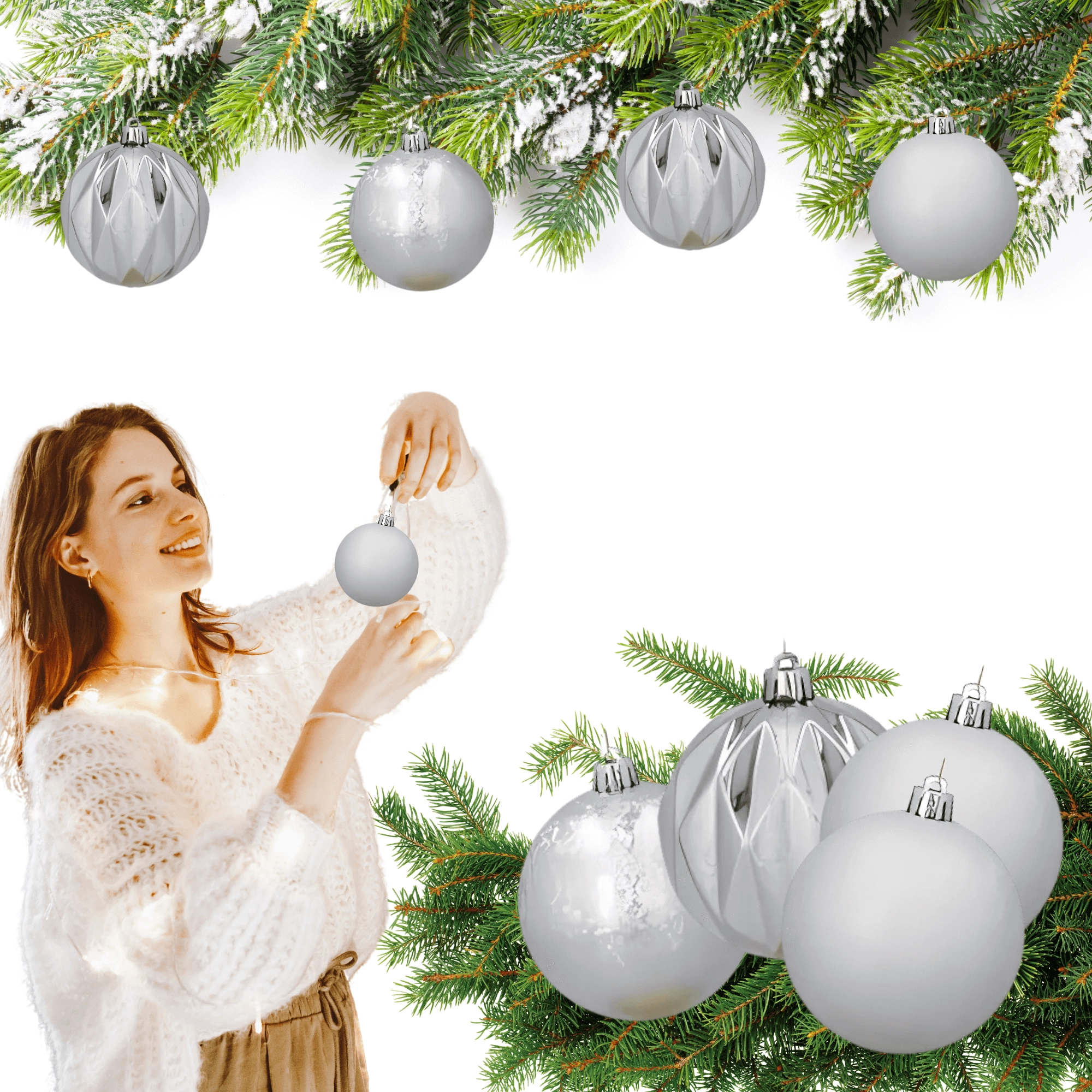 Ezeket az ezüst karácsonyi gömböket úgy tervezték, hogy a fán gyönyörűen érvényesüljenek. A matt, fényes és struktúrált felületek kombinációja vizuális változatosságot és visszafogott fémes csillogást nyújt. Nemcsak a karácsonyfán mutatnak jól, hanem mécsestartókban, koszorúkban vagy stílusos asztali dekorációként is.