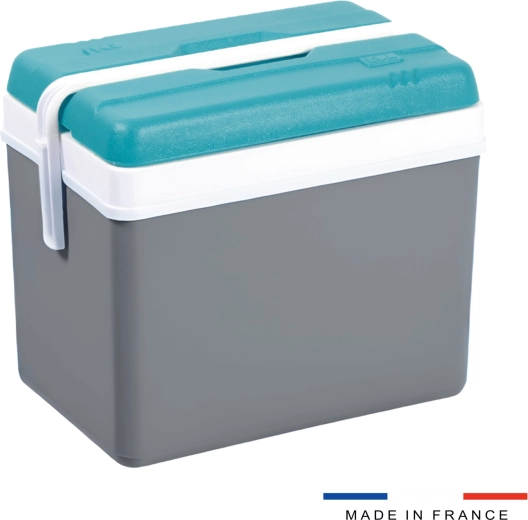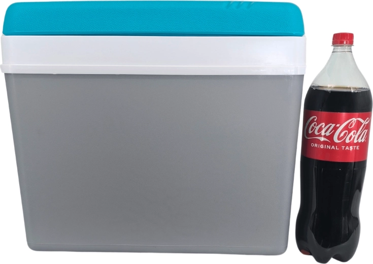 A minőségi polipropilénből készült konstrukció könnyű, strapabíró és könnyen lemosható. A masszív, lehajtható fogantyú biztos fogást nyújt hordozáskor, és egyben biztonságosan rögzíti a fedelet. A belső tér úgy lett kialakítva, hogy 2 literes PET-palackokat állítva is gond nélkül el lehessen helyezni, és maradjon hely szendvicseknek, gyümölcsnek és dobozos italoknak.