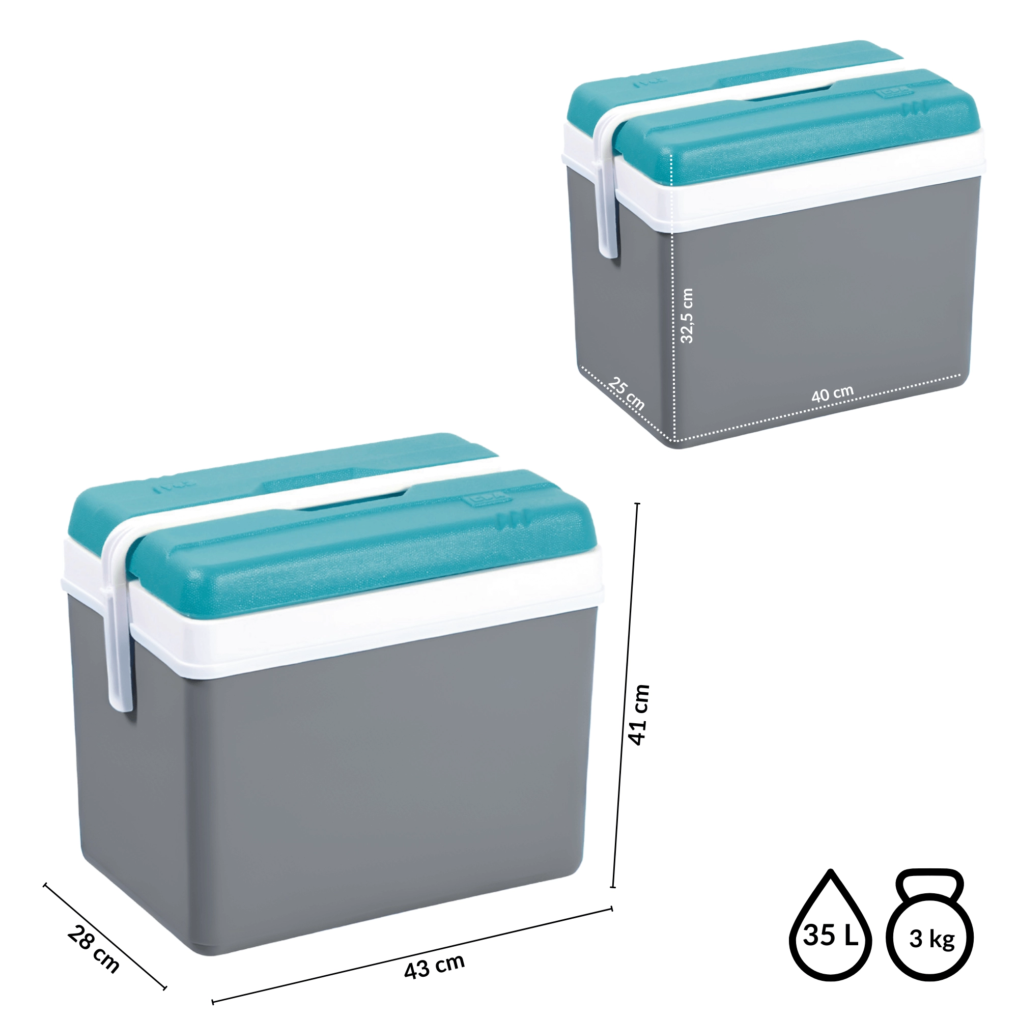 Turista passzív hűtőtáska 35 l KAMAI EDA, szürke türkiz fedéllel