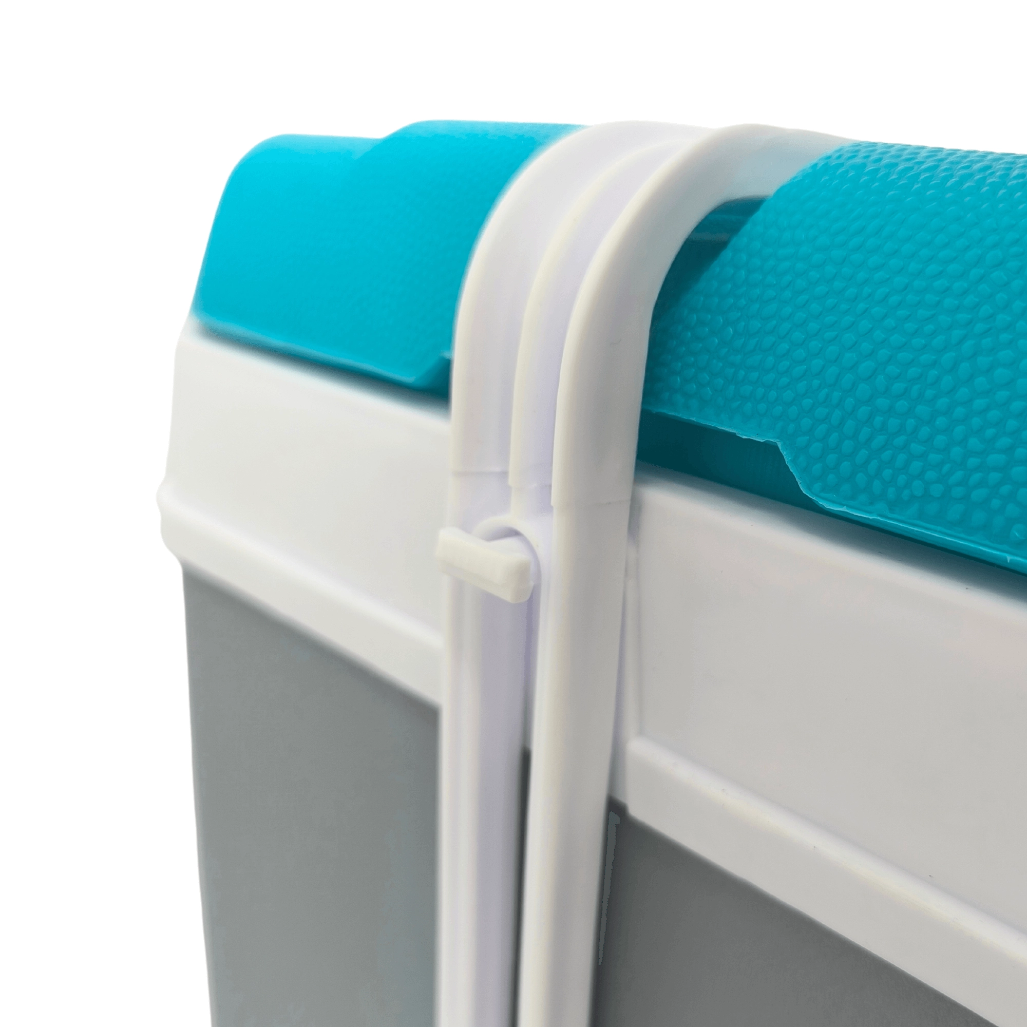 A formázott fehér fogantyú megkönnyíti a hordozást, és szállítás közben rögzíti a fedelet, hogy a tartalom biztonságban maradjon.