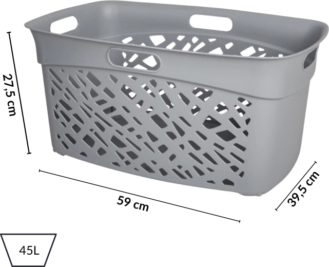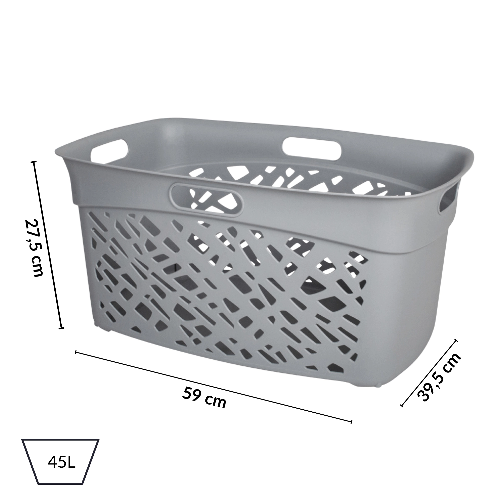 Az ALMERIA szennyeskosár az aszimmetrikus mintázatot nagyméretű szellőzőnyílásokkal ötvözi a jobb légáramlás és a nedvesség, valamint a szagok csökkentése érdekében. Az elegáns szürke kivitel bármely belső térhez illik, és kiemeli az otthon letisztult, modern stílusát.