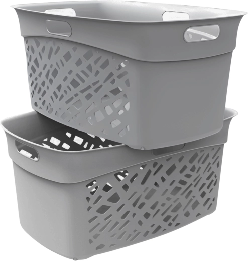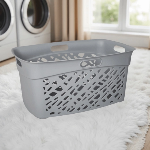 Az ergonómiára helyezett hangsúlyt a négy integrált fogantyú biztosítja a kényelmes hordozáshoz még tele kosár esetén is, valamint a stabil alap a biztonságos lerakáshoz. A 45 literes űrtartalom ideális családi mosáshoz, a rakásolható kialakítás pedig helyet takarít meg kisebb helyiségekben.