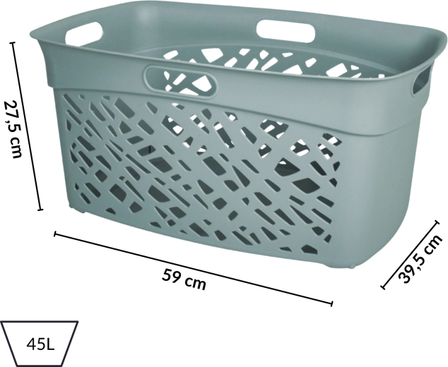 Az ALMERIA 45 l szennyestartó praktikus megoldás minden méretű háztartás számára. Aszimmetrikus perforációi kiváló légáramlást biztosítanak, így belül nem reked meg a nedvesség és nem alakulnak ki kellemetlen szagok. Elegáns, modern megjelenésének köszönhetően ideális a fürdőszobába, mosókonyhába, gardróbba vagy hálószobába.