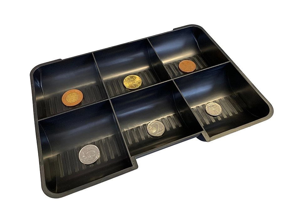 A kivehető érmetartó jól átlátható rekeszei lehetővé teszik az érmék gyors szortírozását és a könnyű hozzáférést visszajáró adásakor.