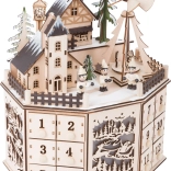 Varázslatos adventi naptár, amely karácsonyi hangulatot hoz az otthonába. Ez a lenyűgöző dekoráció gyönyörű dizájnjával és a karácsonyi kisváros megvilágított történelmi épületeivel hívja fel magára a figyelmet.