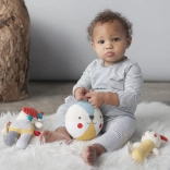A PETIT COLLAGE dizájnja kontrasztos mintákat és élénk színeket kombinál a vizuális stimulációért, miközben a könnyű kialakítás megkönnyíti a tartást az apró kezek számára. Fenntartható választás azoknak a szülőknek, akik biztonságos és környezetbarát játékot keresnek újszülötteknek.