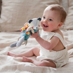 Kontrasztos minták, változatos textúrák és finom részletek támogatják a látás, tapintás és finommotorika fejlődését már 0+ kortól.