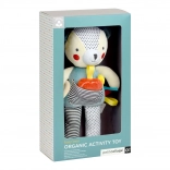 Az fenntartható gyártást GOTS organikus pamut, újrahasznosított anyagok és nem toxikus festékek használata támasztja alá. A játék könnyű, könnyen megfogható és biztonságos a 0+ korosztálynak, ideális babakocsiba, kiságyba és otthonra.