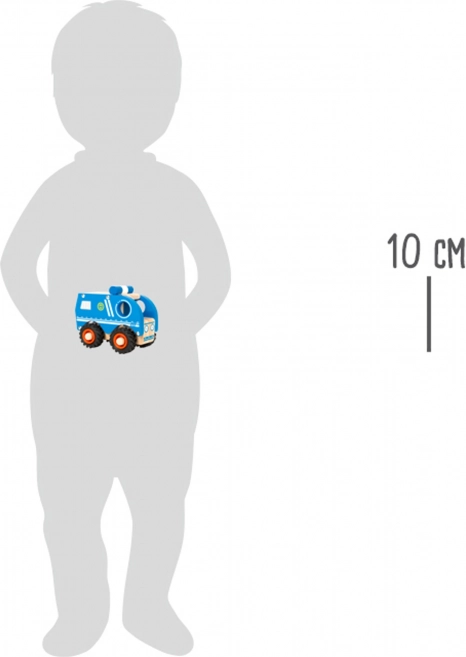 A 100% FSC fából készült, kompakt rendőrautó robusztus kialakításával és gumírozott kerekeivel örömet szerez a kis sofőröknek, és sima gurulást biztosít. A hátul található rakodótérnek köszönhetően figurák szállítására is alkalmas (a figura nem tartozék), így fejleszti a fantáziát és a szerepjátékot. Ideális 18 hónapos kortól.
