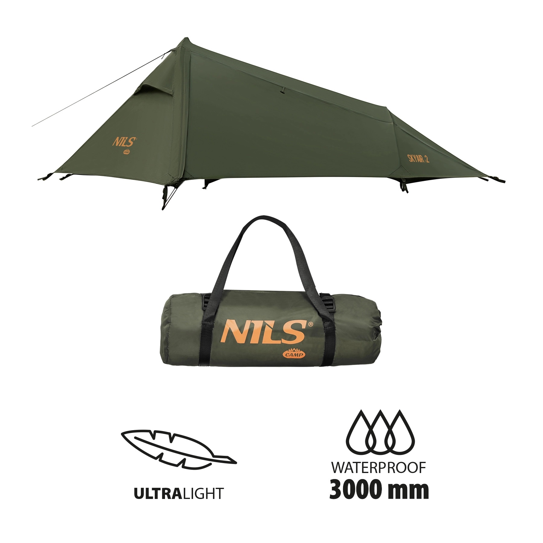 A NILS Camp Skyair 2 ultrakönnyű, kétszemélyes sátor ideális kerékpártúrákhoz, vízitúrákhoz és hegyi kirándulásokhoz. Mindössze 2,4 kg minimális tömeget, kompakt csomagméretet és megbízható védelmet eső és szél ellen kínál. A 3000 mm vízállóságú külső sátor, az 5000 mm-es aljzat és a no-see-um szúnyogháló kényelmes, nyugodt alvást biztosít a természetben.