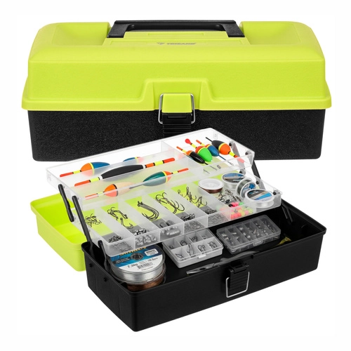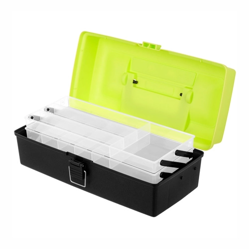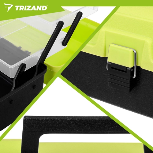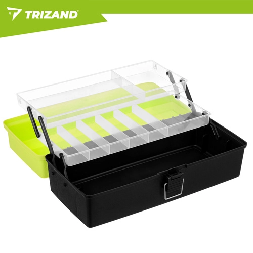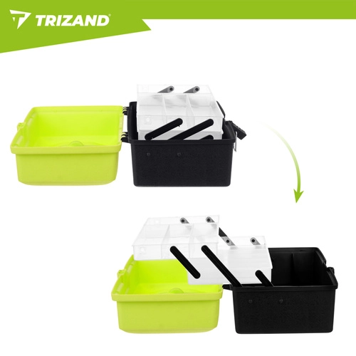 A TRIZAND horgászdoboz ideális választás minden horgásznak, aki csalit, horgokat, forgókapcsokat és egyéb kellékeket szeretne tökéletesen rendszerezve tartani. A felső részben 2 felnyitható polc 11 rekesszel szolgál az apróságoknak, míg a tágas alsó kamra a nagyobb felszerelést fogadja be. A masszív pattintós zárak mindent biztonságosan zárva tartanak szállítás közben.