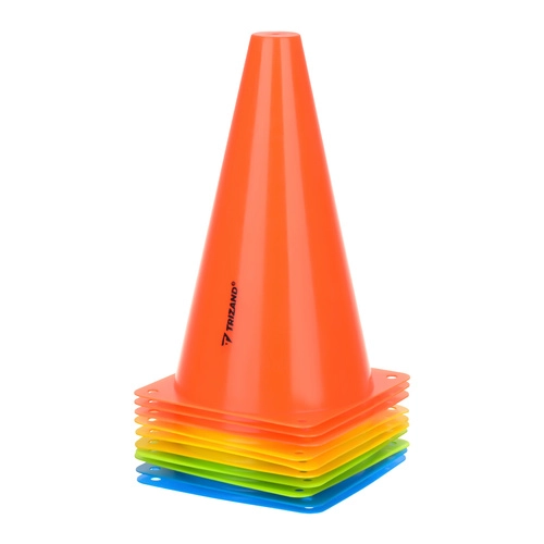 Alakítson ki átlátható és biztonságos edzésteret pillanatok alatt. A készlet 10 darab, 23,5 cm magas bóját tartalmaz négy telt színben az útvonalak, célok és zónák egyértelmű jelöléséhez. A rugalmas műanyag növeli a nyomás- és ütésállóságot, míg a stabil talp segít különböző felületeken helyben tartani a bójákat.