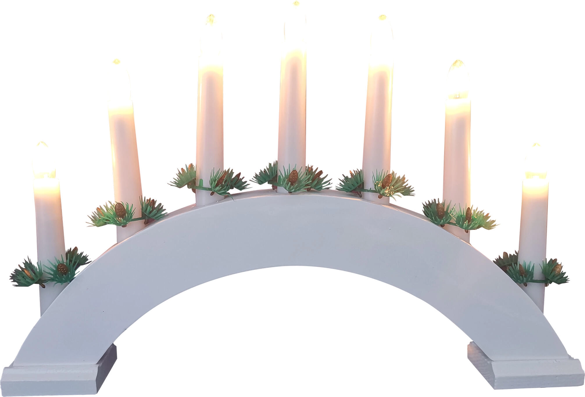 Karácsonyi elektromos gyertyatartó 7 gyertyával fehér faívben