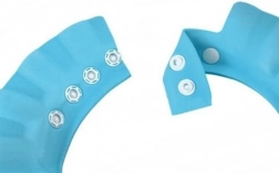 A hullámos perem hatékonyan elvezeti a vizet az arctól, így sampon és hab nem kerül a szemekbe.