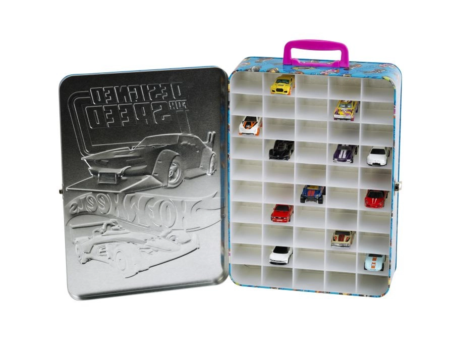 Belül enyhén áttetsző, minőségi műanyagból készült betét található, azonos méretű rekeszekkel a szabványos fém kisautók számára. Minden modell a kinyitás után azonnal látható és könnyen hozzáférhető – rend és gyors választás mindig kéznél.