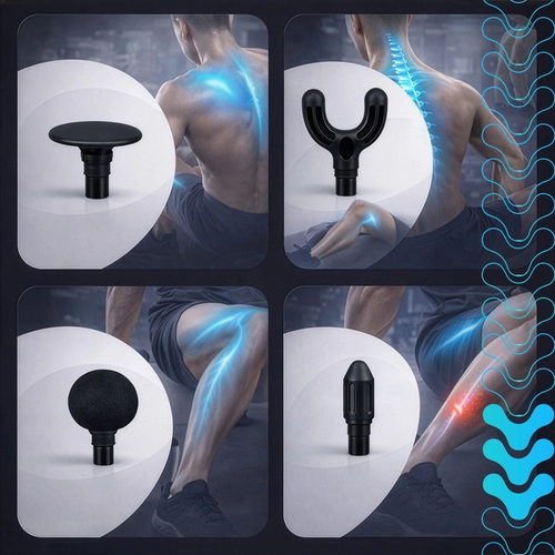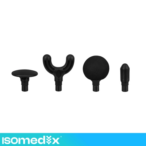 - 4 fej a csomagban: gömb (nagyobb izomcsoportokhoz), villa (a gerinc mentén és inakhoz), kúp (triggerpontokhoz, precíz helyekhez), lapos (univerzális használatra).