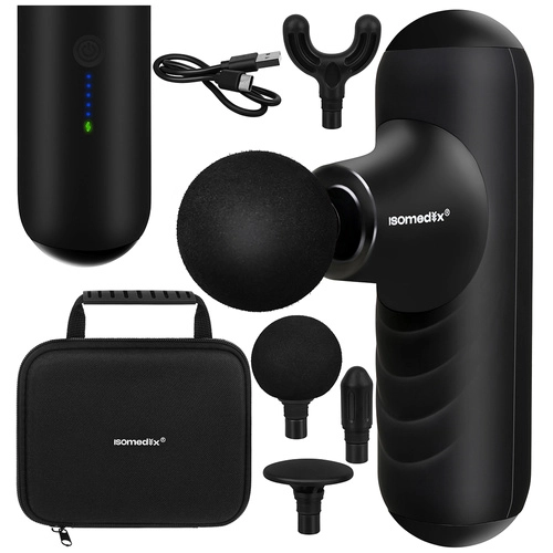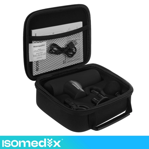 Az ISOMEDIX mini masszázspisztoly hatékony percussziós masszázst nyújt zsebméretben. A 25 W-os nagy teljesítménynek, a 6 mm-es amplitúdónak és az 1900–3000 ford./perc frekvenciának köszönhetően könnyedén felmelegíti az izmokat, oldja a fasciális feszültséget és segíti a gyorsabb regenerációt terhelés után.