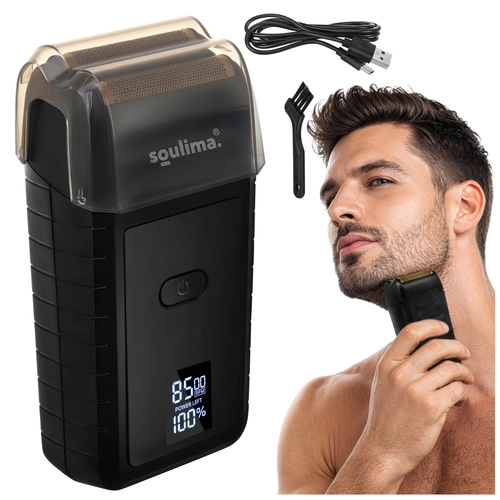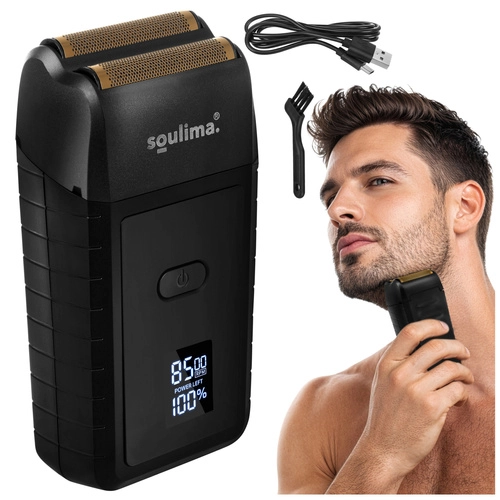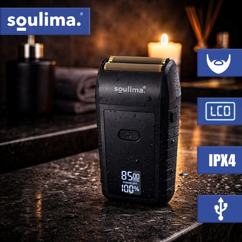 Élvezze az alapos, mégis kíméletes borotválást a kompakt SOULIMA készülékkel. A dupla fólia és a két éles rozsdamentes penge a rövid és a hosszabb szőrszálakat is hatékonyan elkapja, miközben a LED kijelző folyamatosan mutatja a hátralévő kapacitást. A USB‑C töltésnek és a tartós kialakításnak köszönhetően ideális a fürdőszobába és az utazótáskába egyaránt.