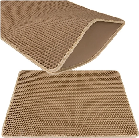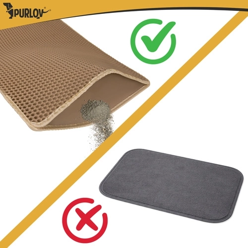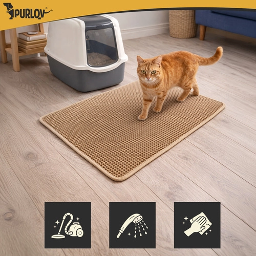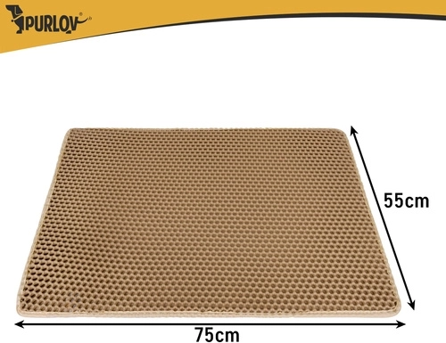 Vége a szétszórt alomnak a vécé körül. A 75 × 55 cm-es Purlov alátét EVA hab „méhsejt” szerkezetének köszönhetően hatékonyan felfogja a szemcséket a mancsokról, kétrétegű zsebes kialakítása megkönnyíti a kiöntést, vízálló, csúszásmentes felülete pedig tiszta és biztonságos zónát teremt a macskavécé körül.