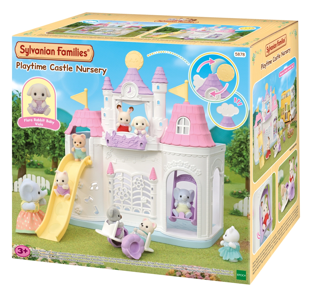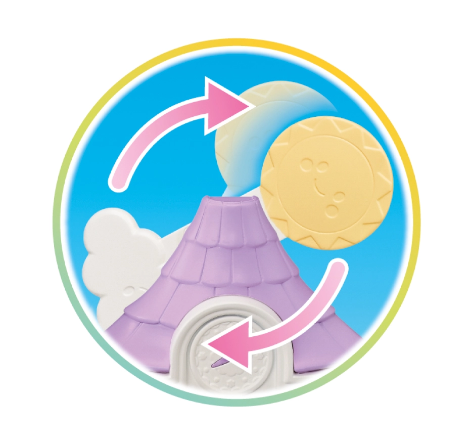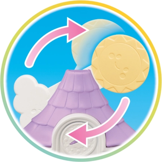 Egészen egyedi a időjárás-váltó játékfunkció is: válthatsz napos és esős nap között, és a tető ívét, valamint a berendezést is az aktuális jelenethez igazíthatod. A csomag része a kedves Flóra nyuszi baba mozgatható végtagokkal és fejjel; a ruhácska levehető és cserélhető.