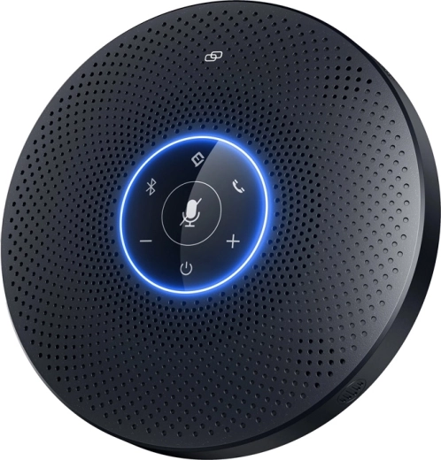 Professzionális konferenciahangszóró közepes és nagyobb helyiségekhez 360°‑os, 5 m‑ig terjedő hangfelvétellel, négy mikrofonnal, VoiceIA® zajcsökkentő technológiával és tiszta, hangos, 89 dB‑es hangzással. USB‑C és Bluetooth 5.0 csatlakozást kínál, akár 2 eszköz egyidejű vezeték nélküli párosítását, valamint két egység láncba kötését nagyobb megbeszélésekhez. Plug & play kompatibilitás a Zoom, Microsoft Teams és Webex szolgáltatásokkal.